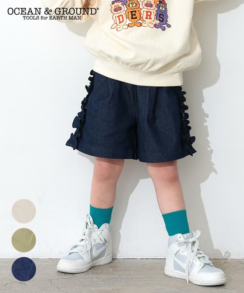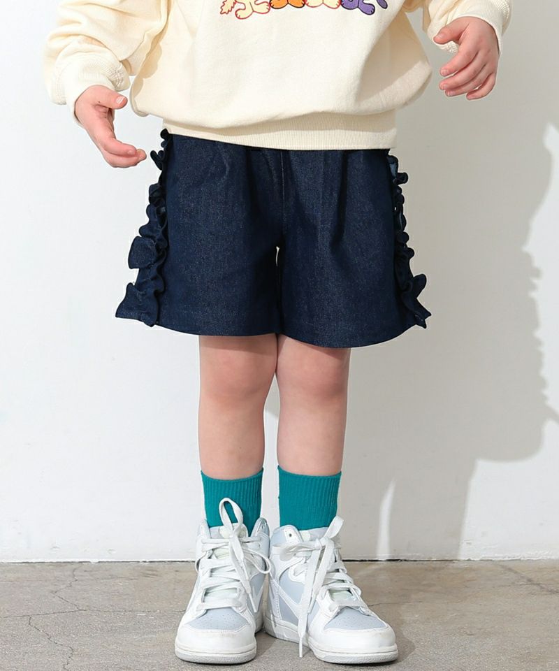 サイドにあしらったフリルがポイントのショートパンツ。