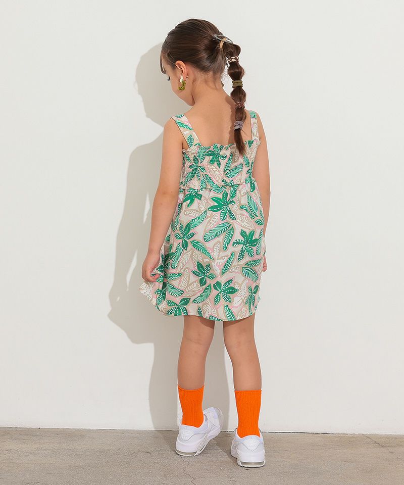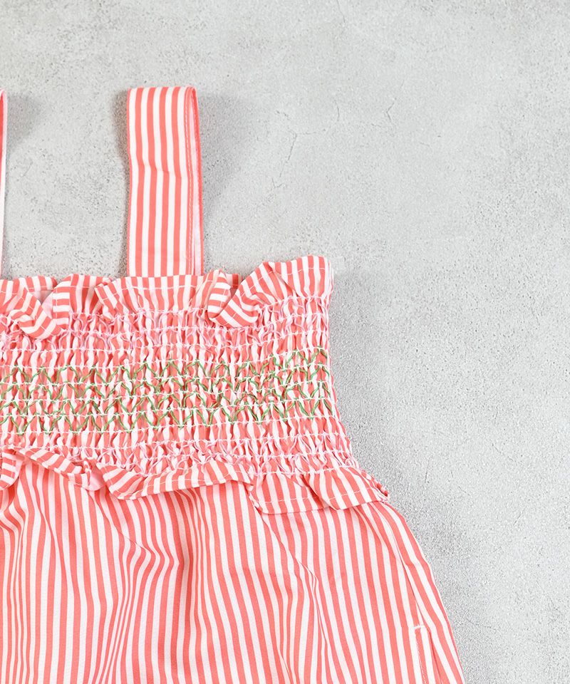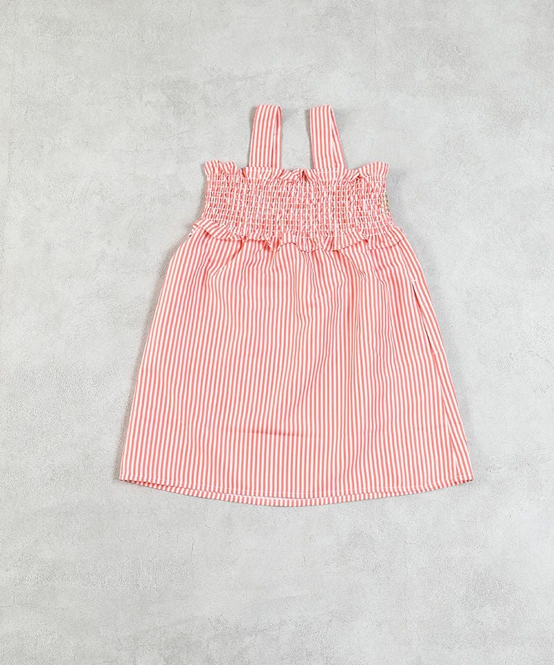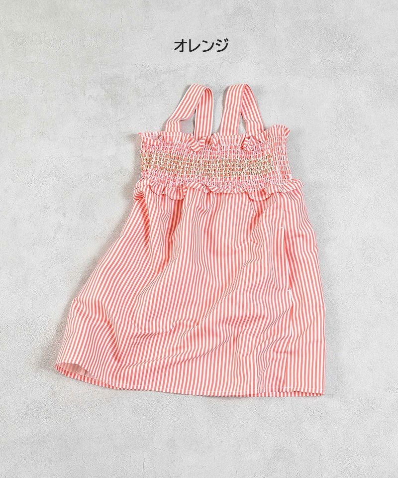 胸に入ったスモッキング刺繍がポイントの、涼しげなワンピース。