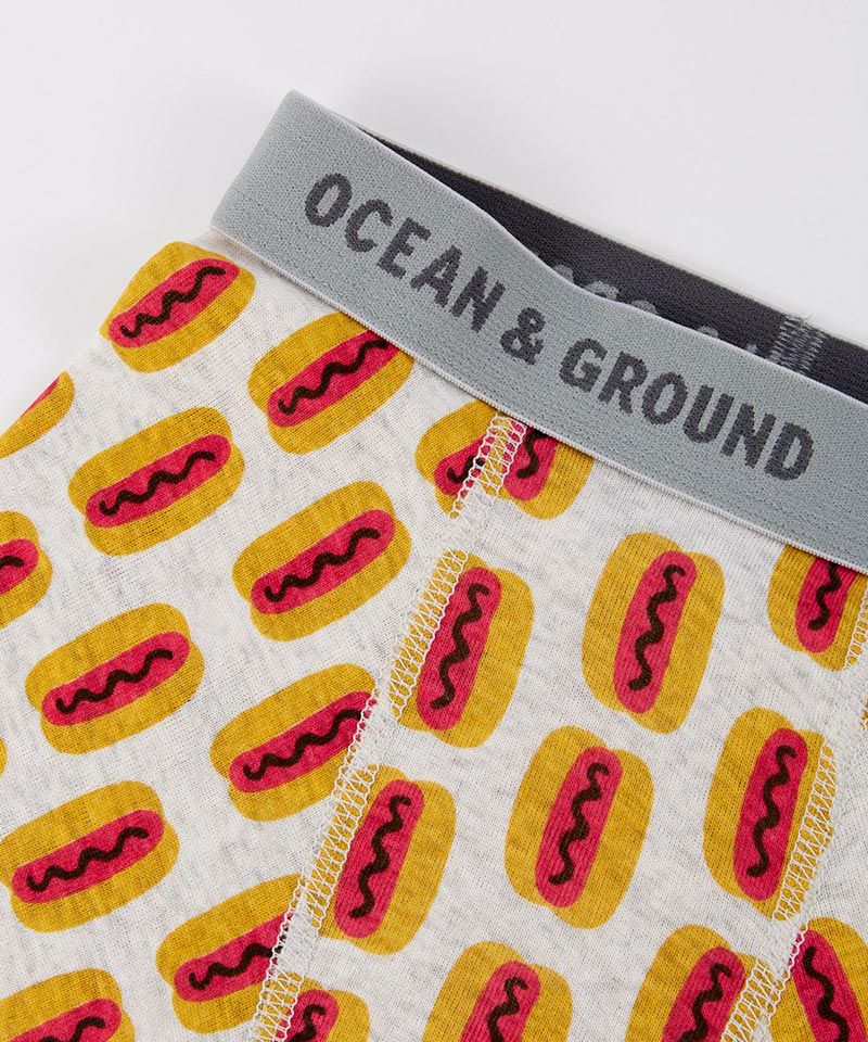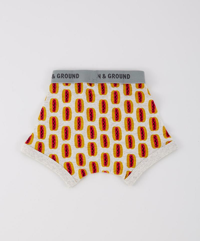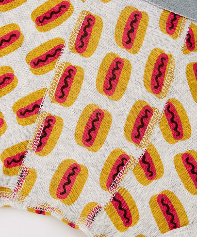 全面にホットドッグのイラストがプリントされたキャッチーな総柄と
