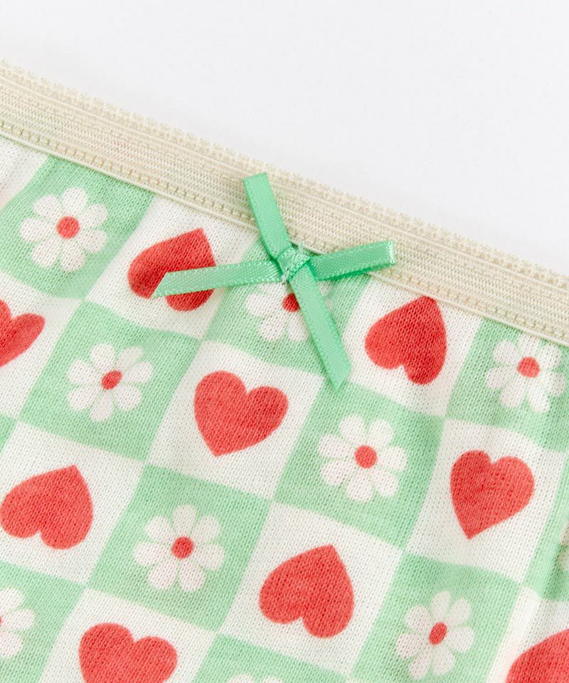 ハートとお花のモチーフが入ったチェッカー柄がポップで可愛い柄と