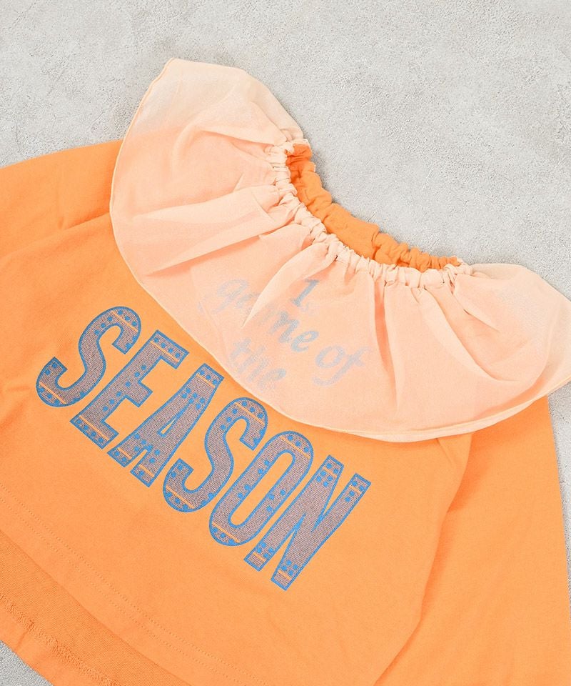 首元とにふんわりフリルをあしらったガーリーなロンT。