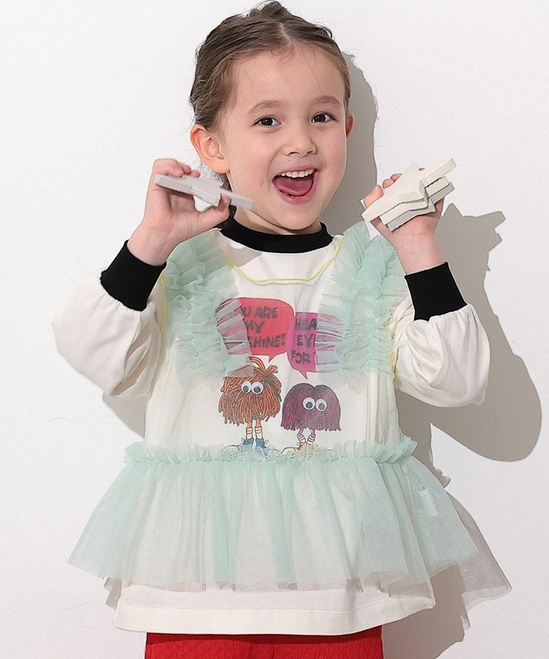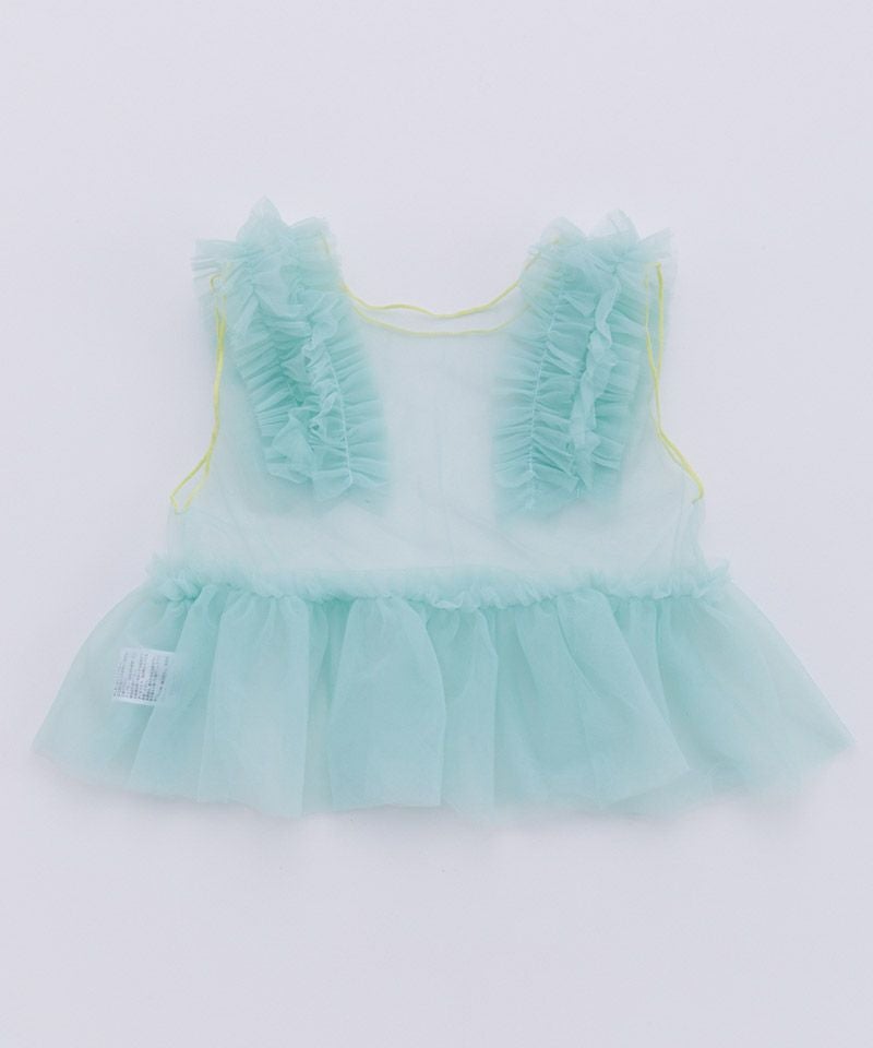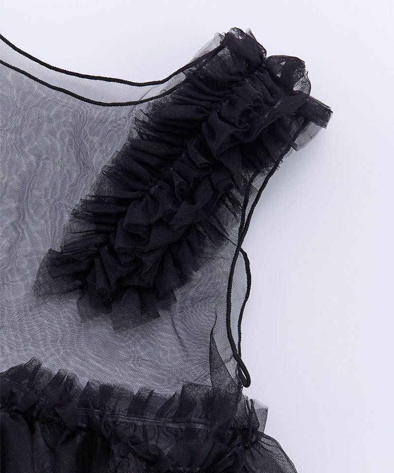 ふんわりボリュームのチュールフリルが顔まわりを華やかに演出。