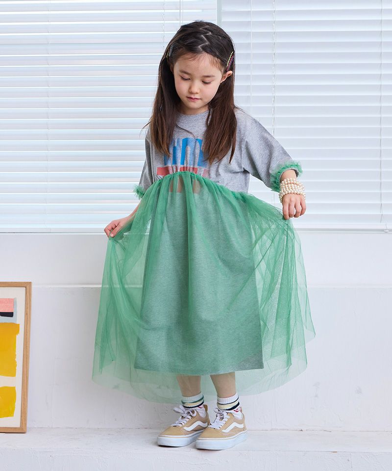 ふんわりダブルに重なったチュールが印象的なガーリーなワンピース♪
