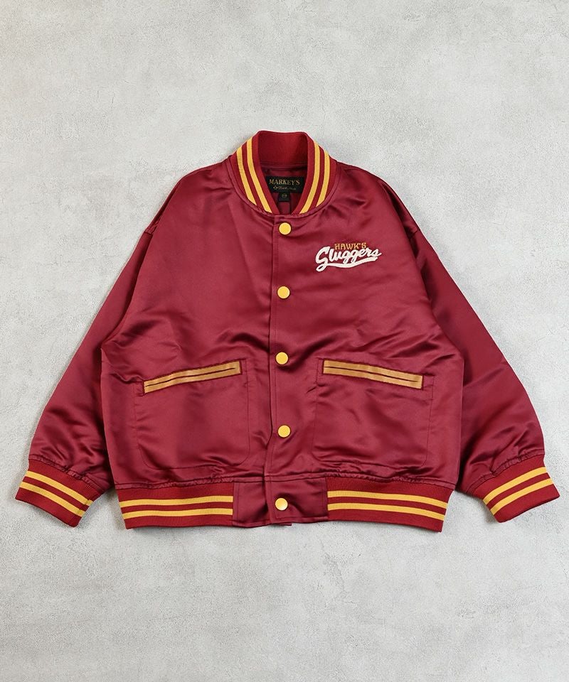 つややかなサテン生地を使用した、存在感たっぷりのジャケット。