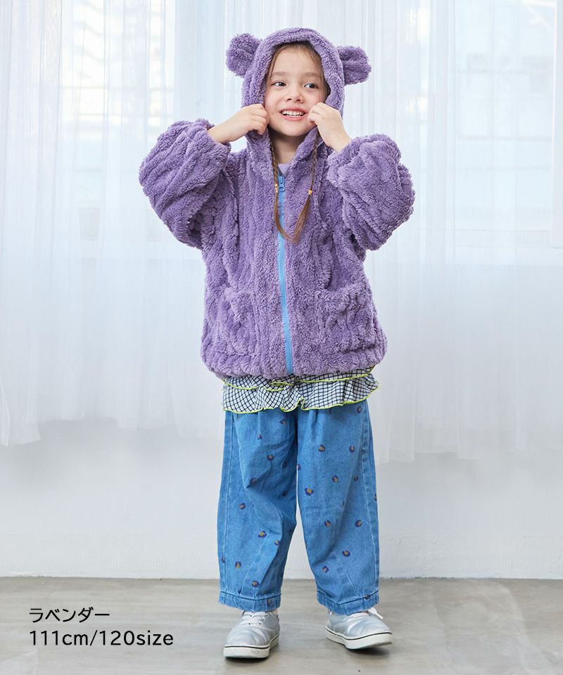 フードには小さな耳をつけ、子どもらしいキュートさをプラスしました。