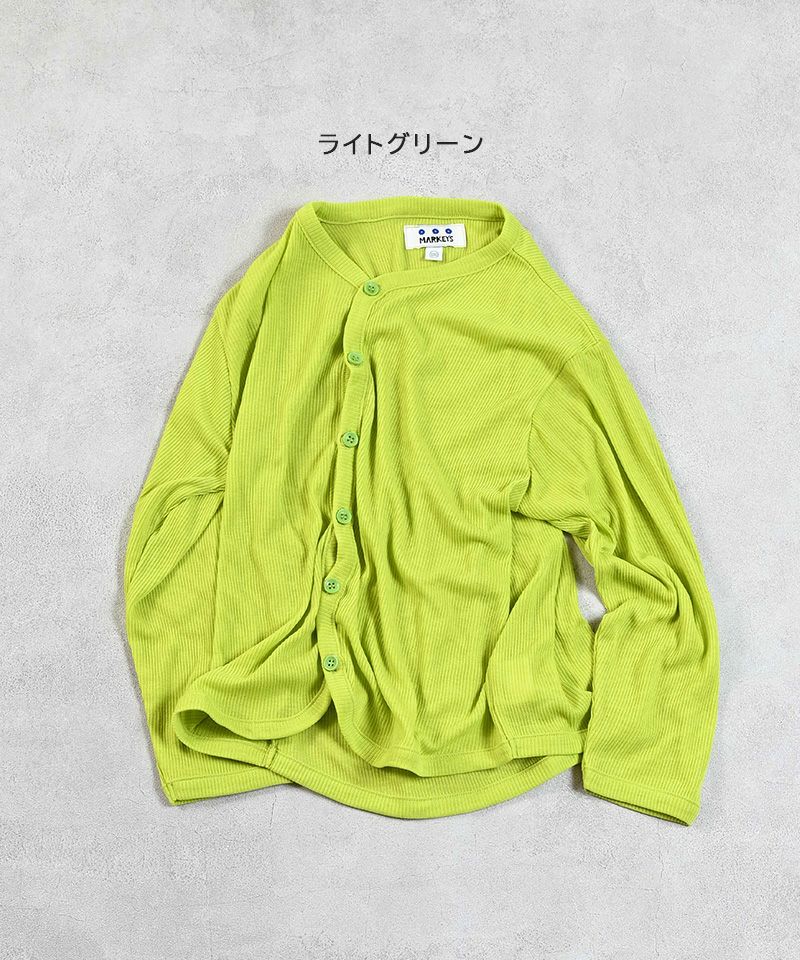 こんなカラーのカーディガン待ってました!差し色ネオンカラーでアクセントに。冷房対策にも良さそうな薄手タイプ。