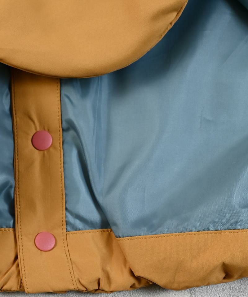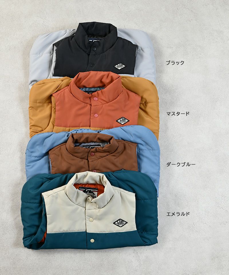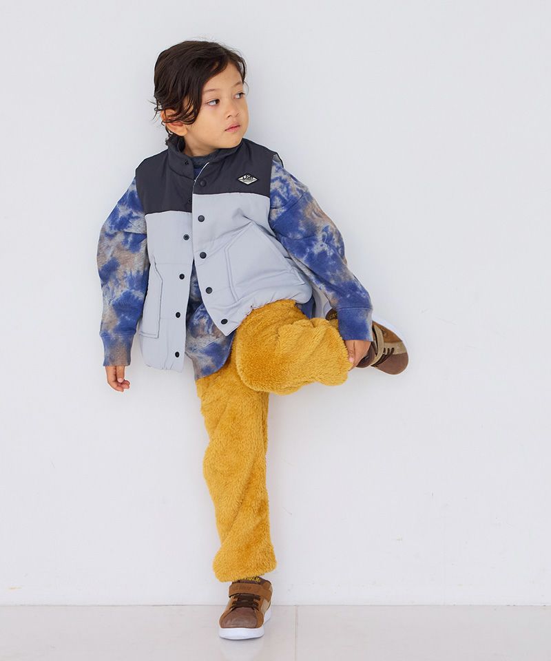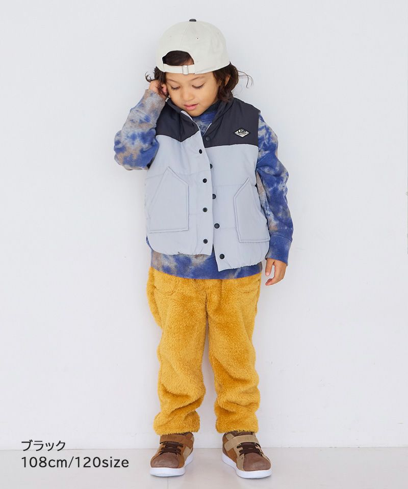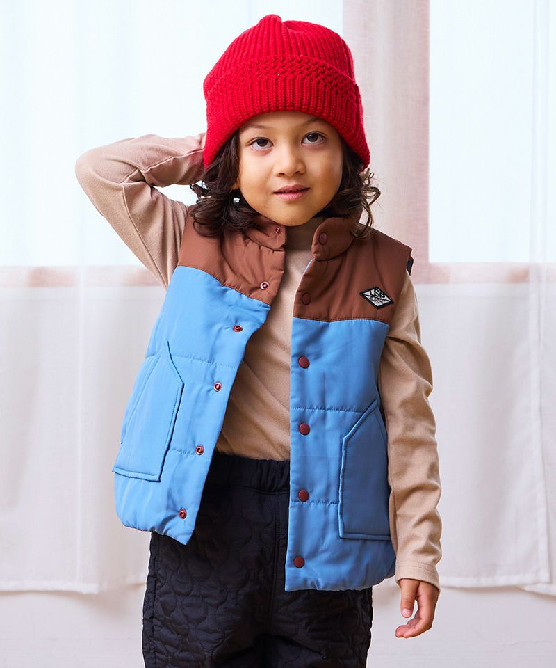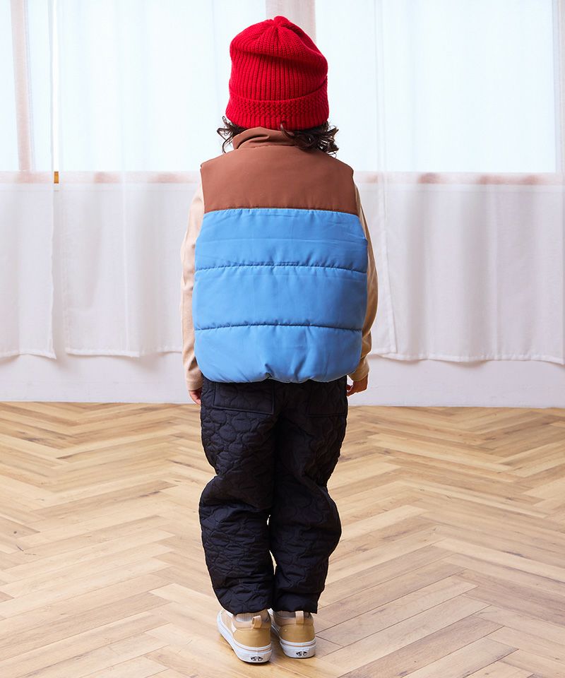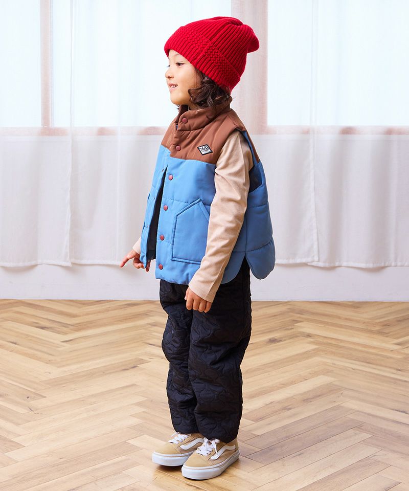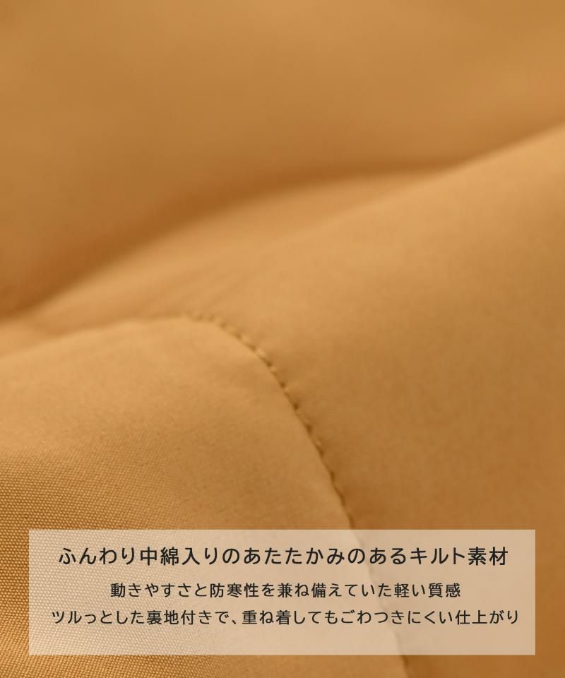ふんわり中綿入りで、動きやすさと防寒性を兼ね備えています。