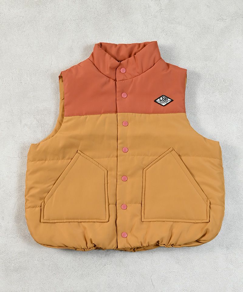 ヨーク切り替えデザインがポイントのキルトベスト。