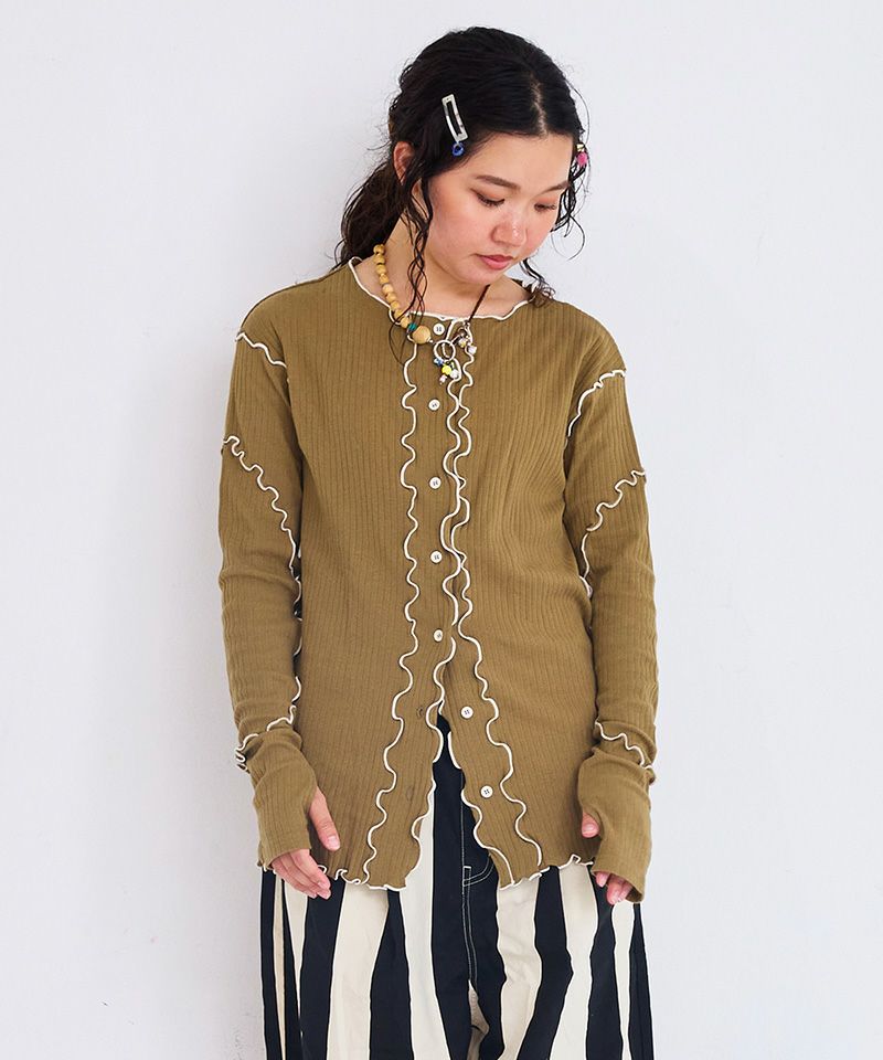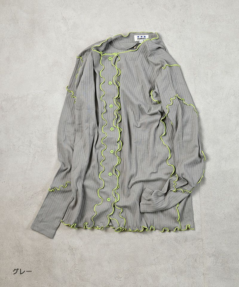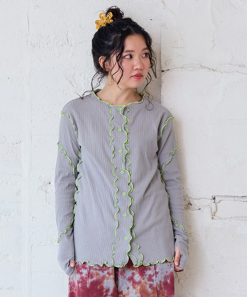 シンプルなインナーに羽織るとコーデが華やかに仕上がります。