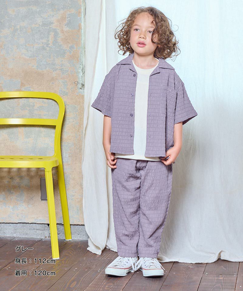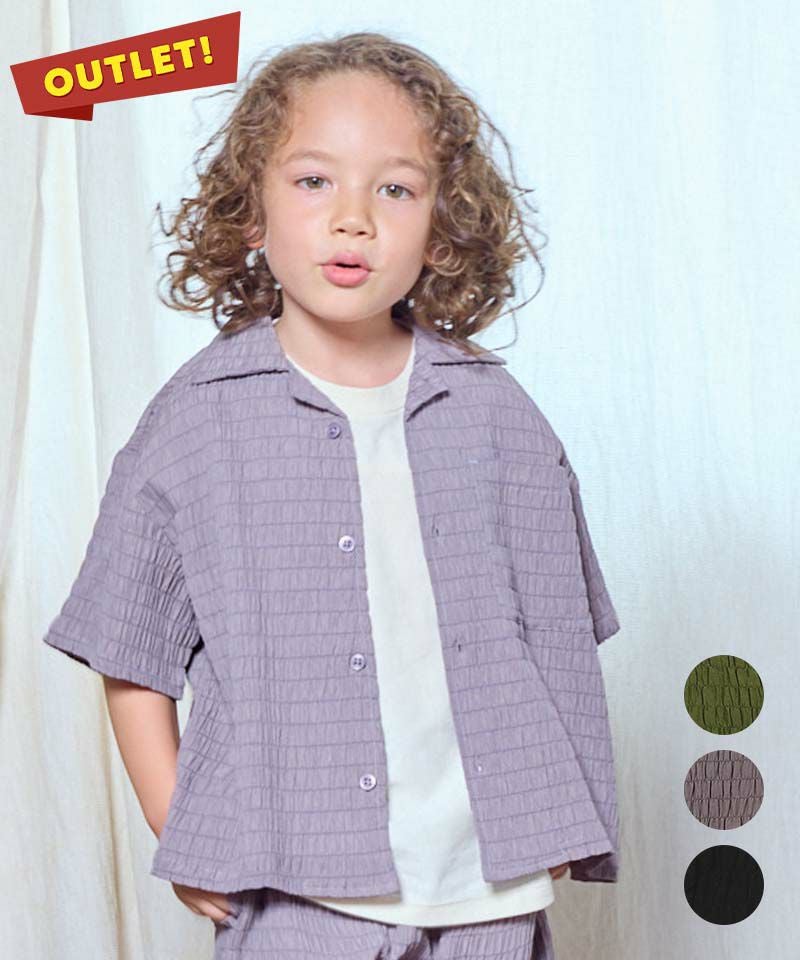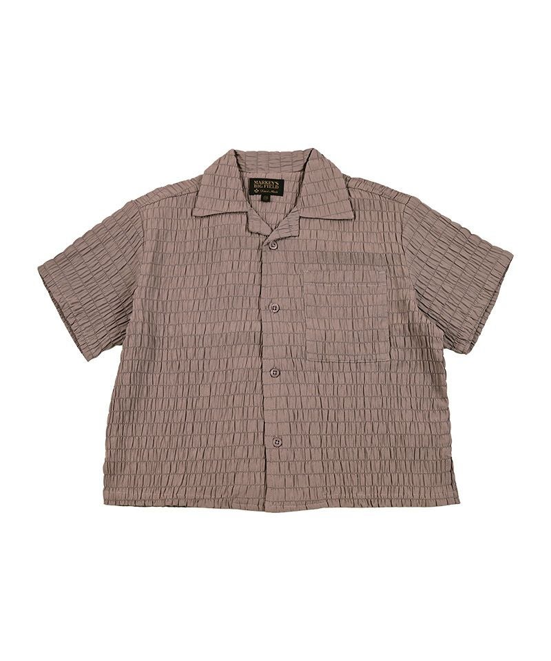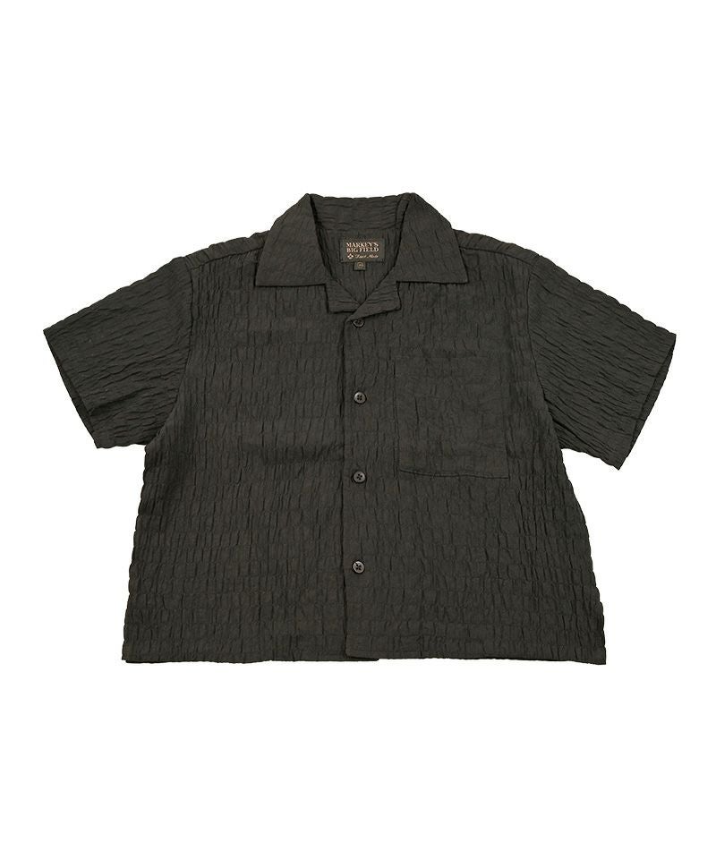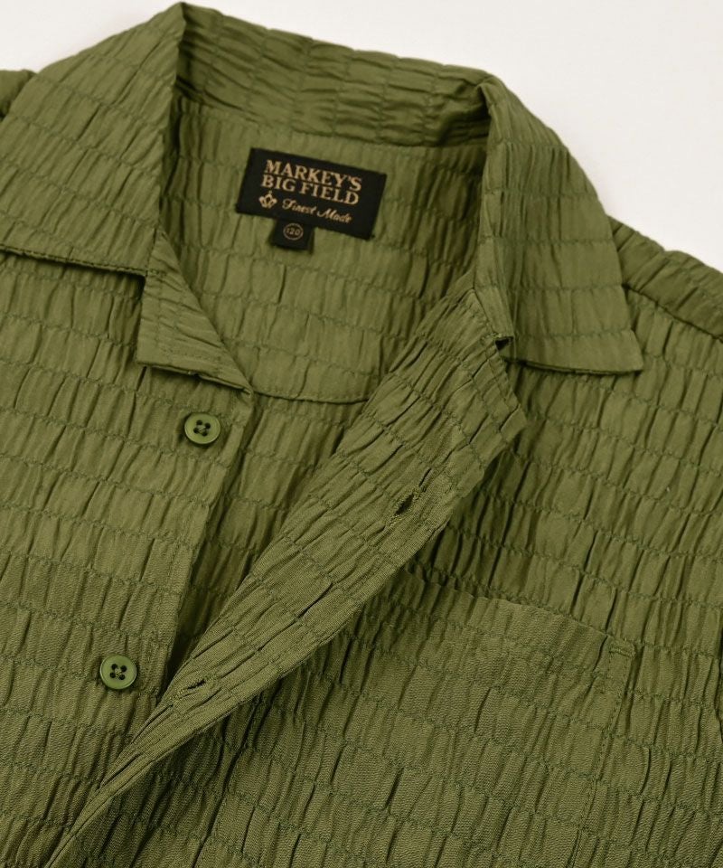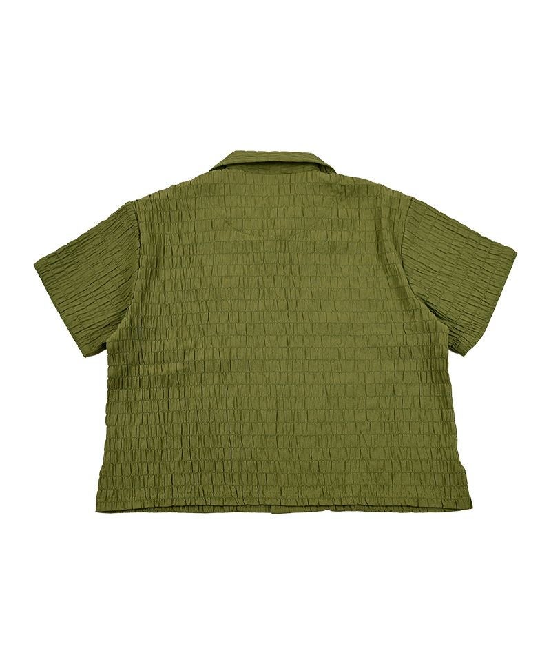 クレープ感があり、肌と生地が離れやすく設計されているシャーリング生地を使用した、オープンカラーシャツ♪