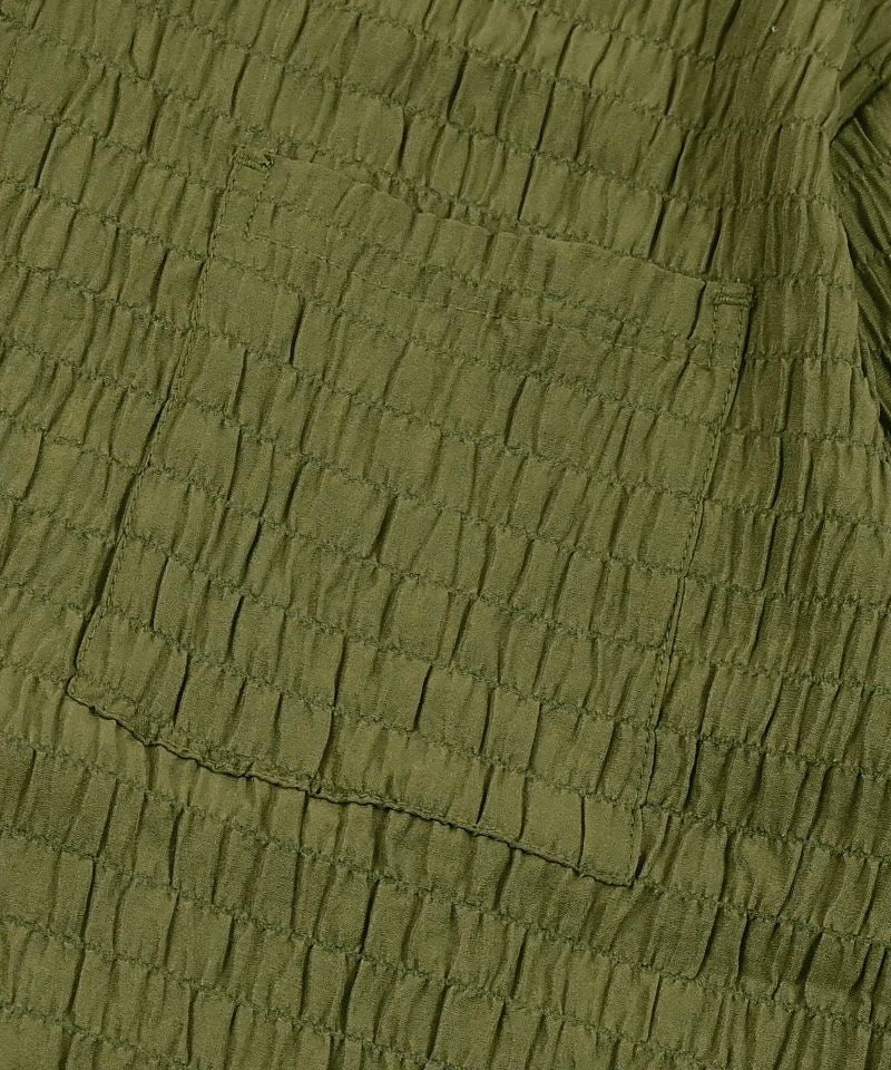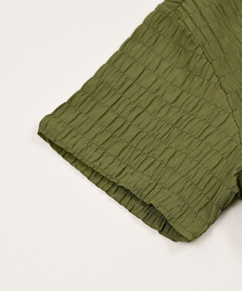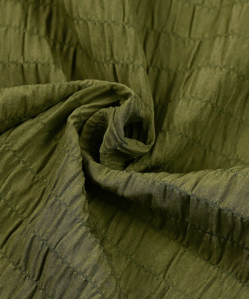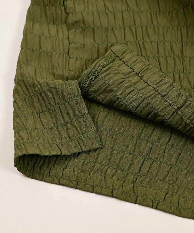シャーリング生地の特性上、凹凸の出方、商品の仕上がりサイズにバラつきがあり、同じカラー、サイズをご購入いただきましても、多少個体差のある商品となっております。