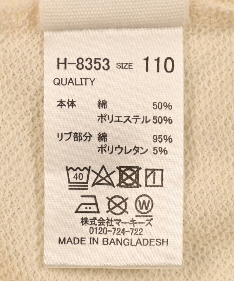 | 素材: | [本体]綿 50% ポリエステル 50% [リブ部分]綿95% ポリウレタン 5% |