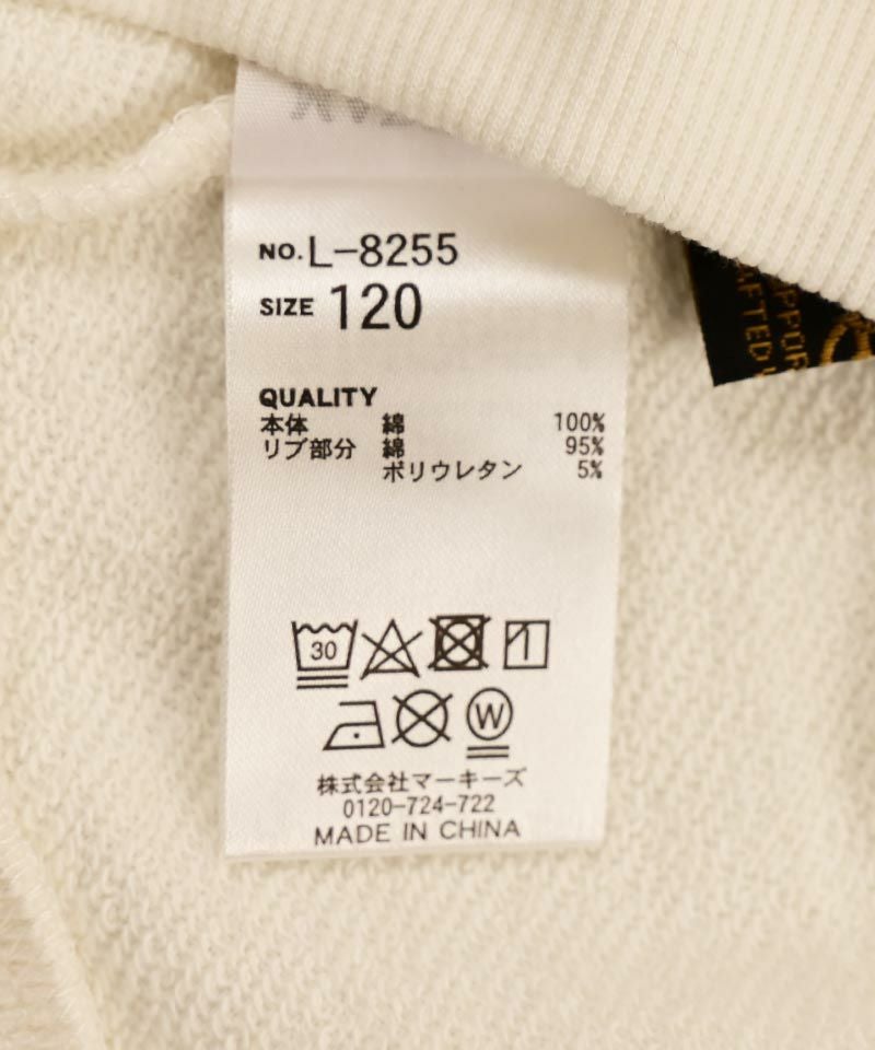 | 素材: | [本体]綿 100% [リブ部分]綿 95% ポリウレタン 5% |
