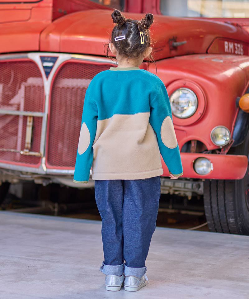【バイカラーが目を引くフリース素材のトップス】