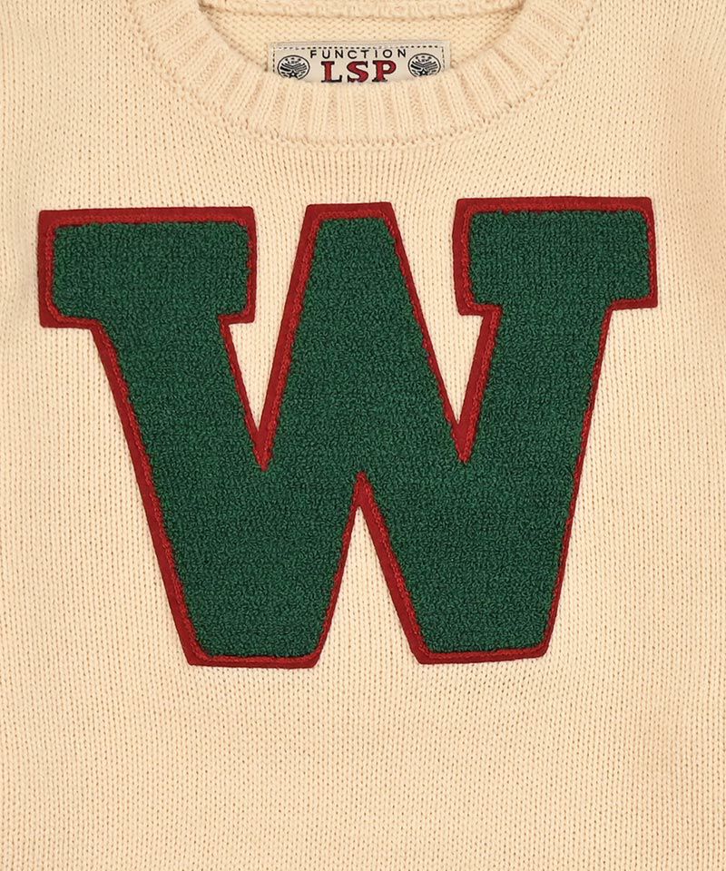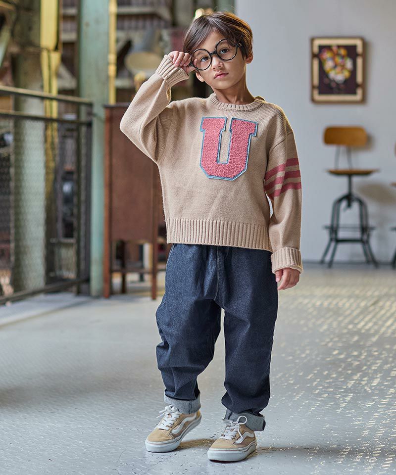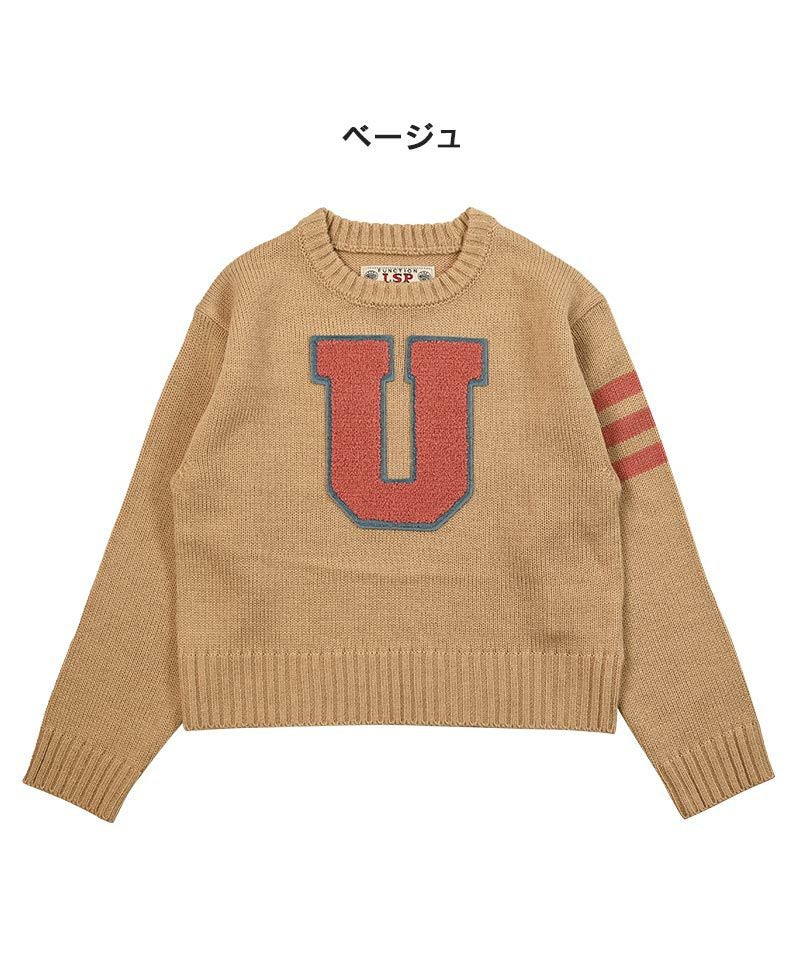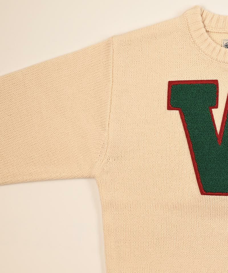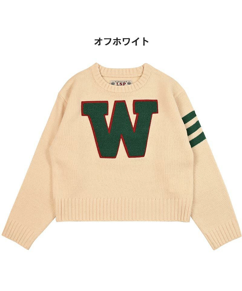 【サガラ刺繍ワッペンが可愛いカレッジレタードニット】