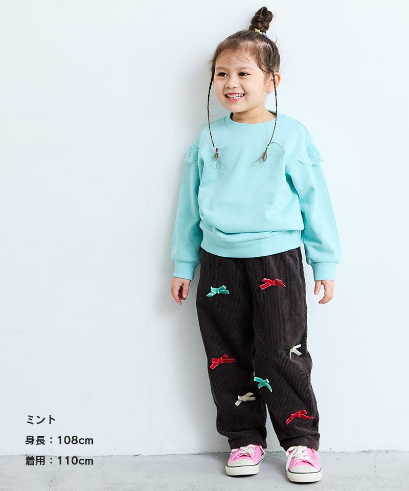 肩部分のレースのフリルや袖のお花の刺繍が女の子らしさを演出♪