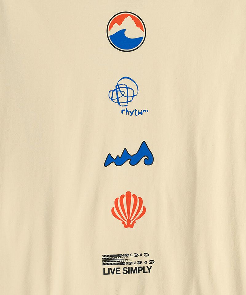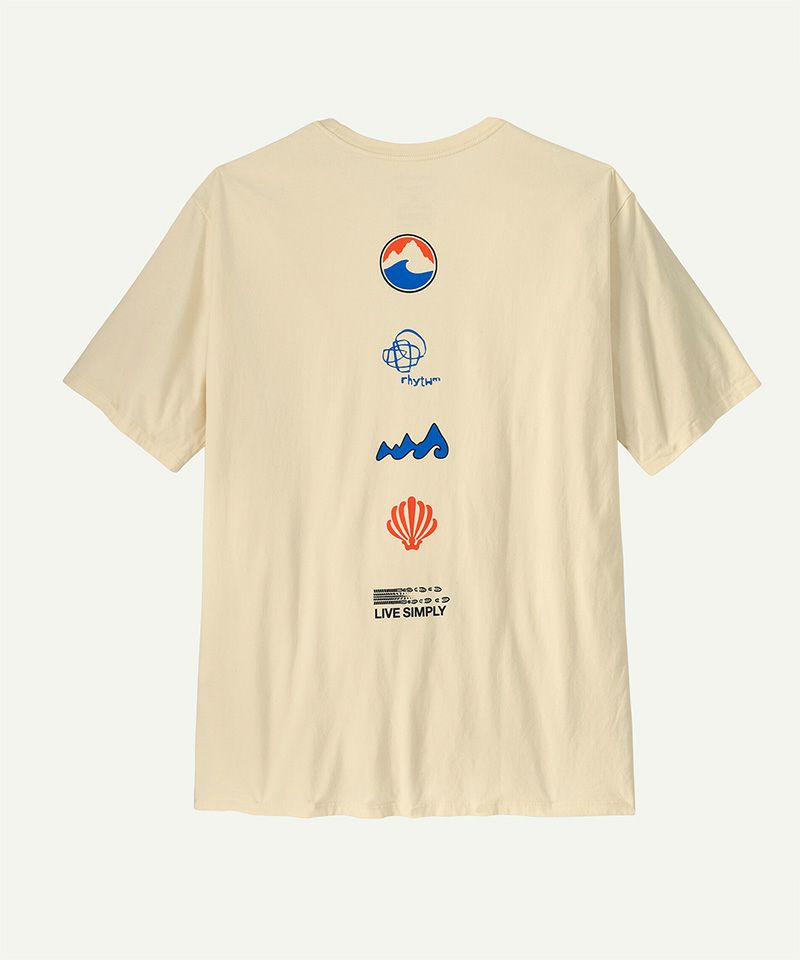 グラフィックで過去を振りかえる「ロング・ウェイ・ラウンド」シリーズは、1995年ごろのオーバルロゴや、クライミング用ウェアでコアなファンのお気に入りのデザインであるRhythm(リズム)や、初期のサーフボードのグラフィックや、Water Girl(ウォーター・ガール)の貝殻ロゴなどを探求。それらをスクリーンプリントであしらったこのTシャツはオーガニックコットン100%素材のジャージーを使用し、フェアトレード・サーティファイドの工場で製造4.7オンス・オーガニックコットン100%のジャージー。