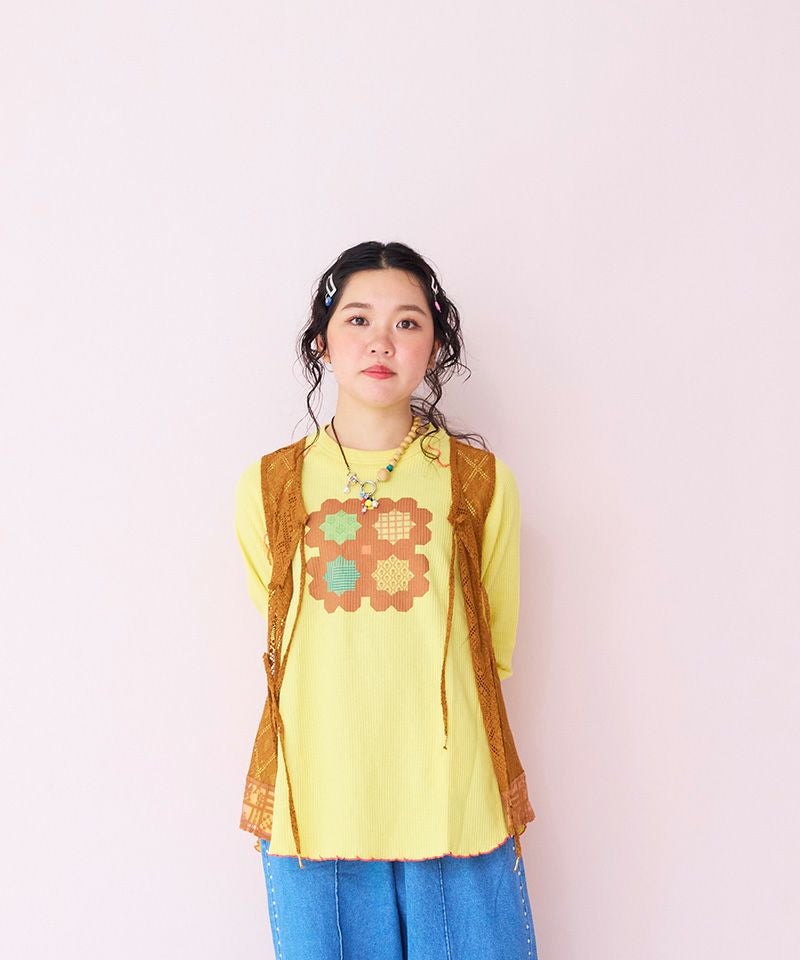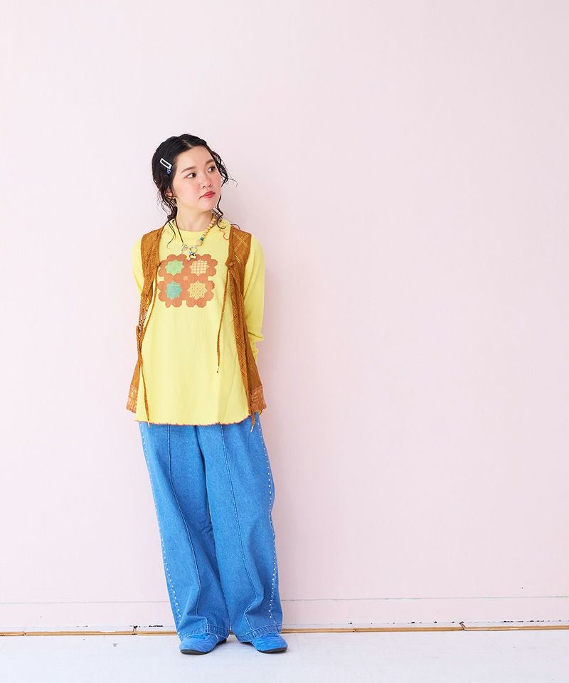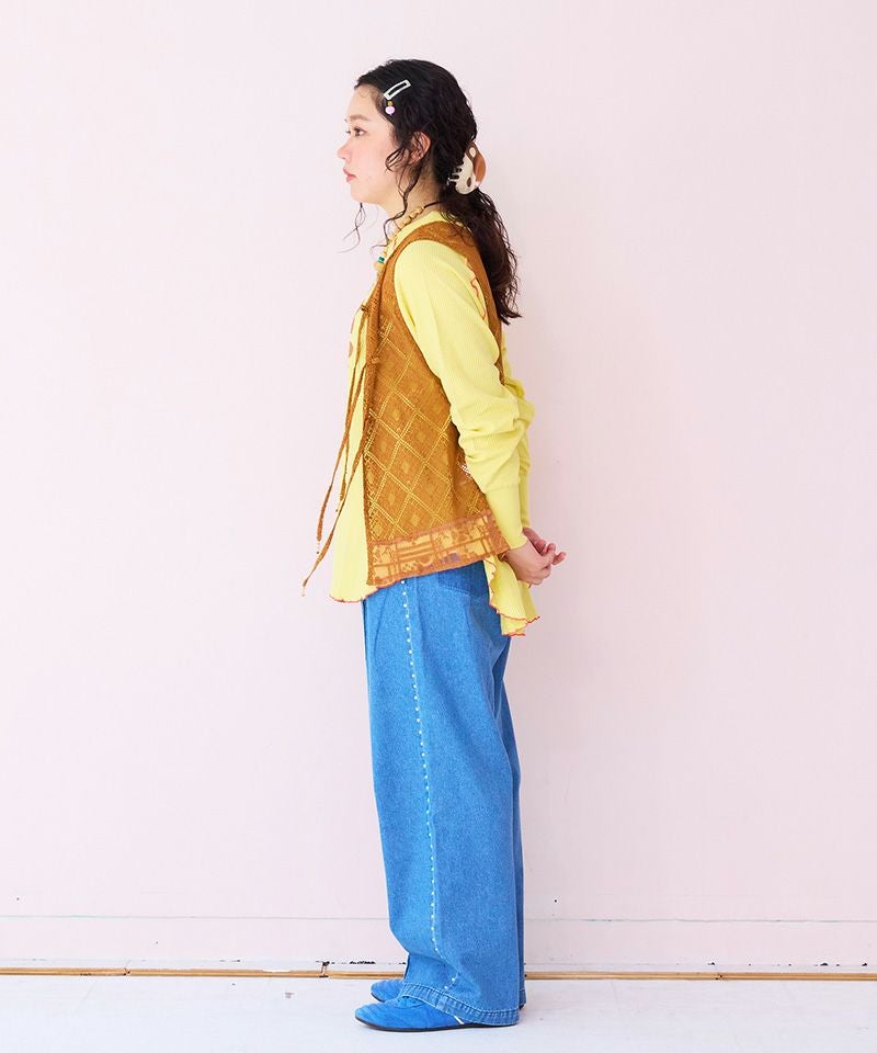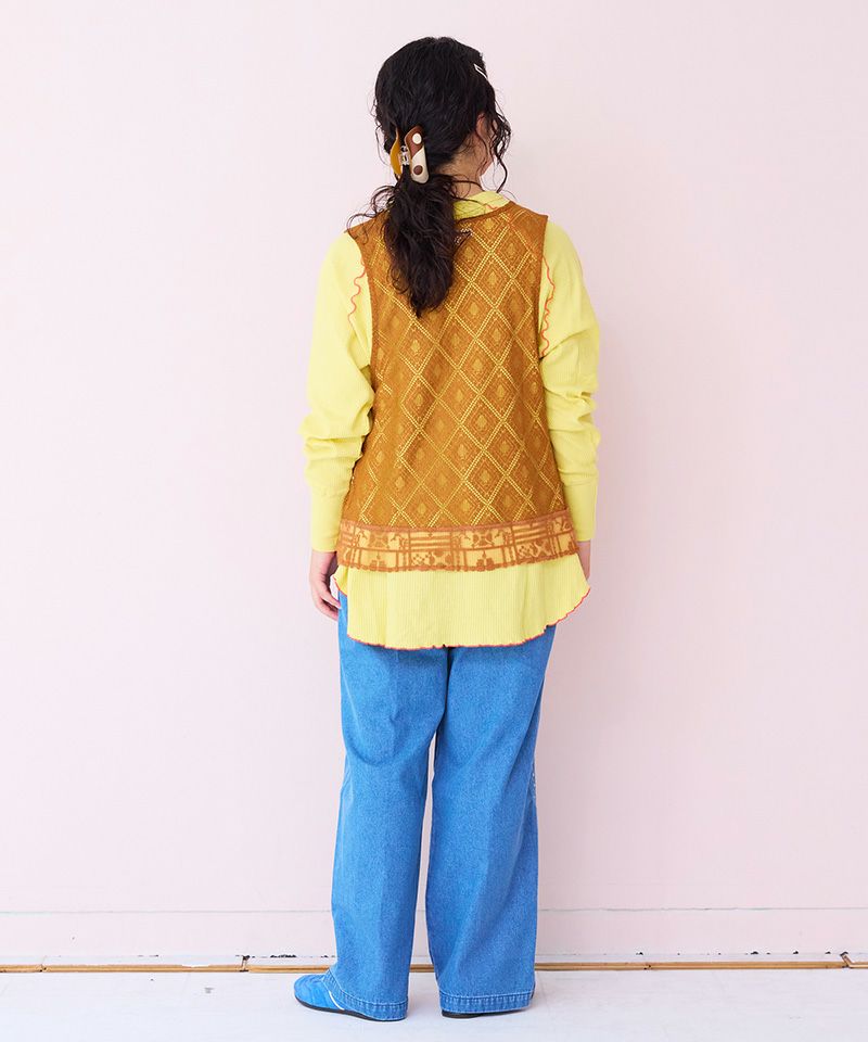 Tシャツの上に重ねてジレ風に着るのがおすすめ。