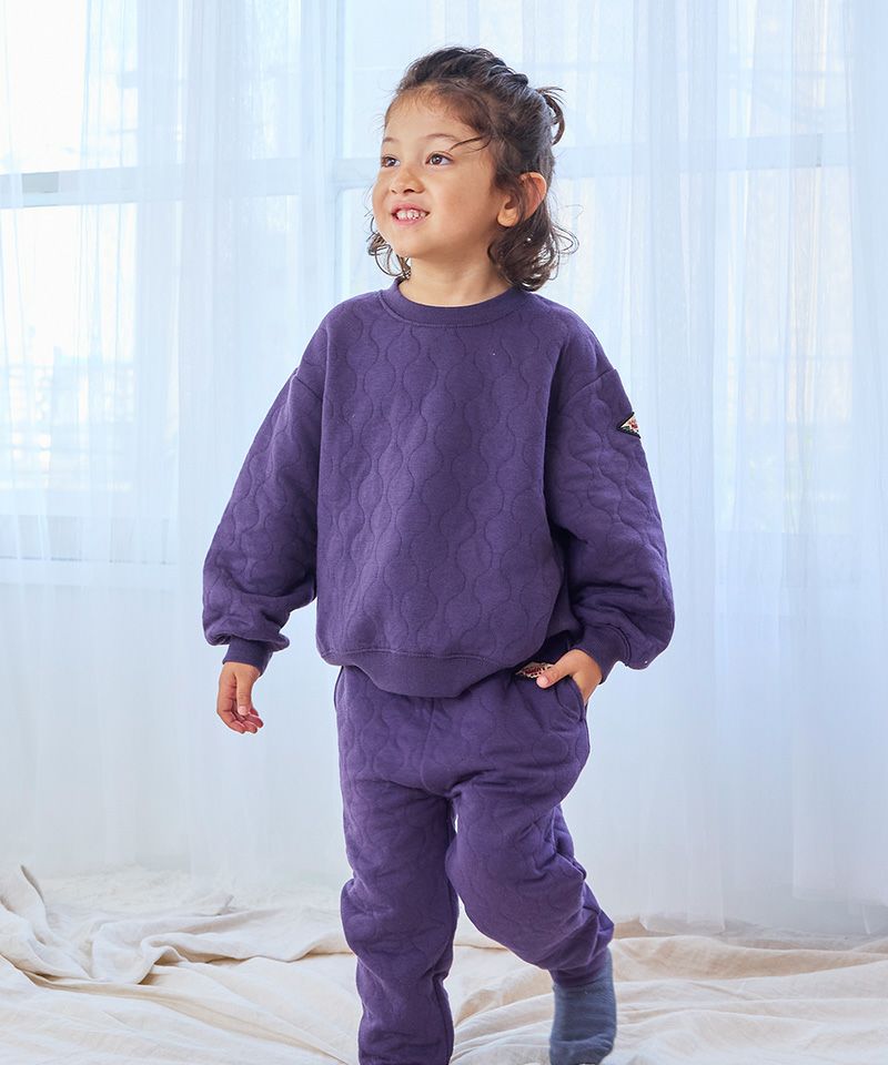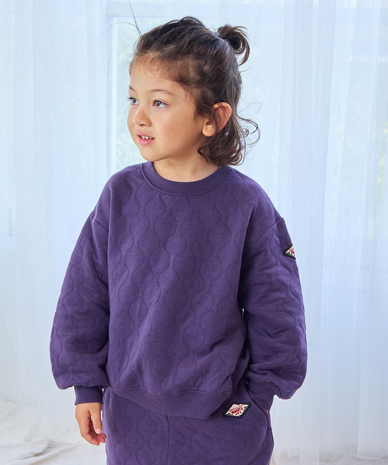 ふっくらと中わたを挟んだキルト素材のトレーナー生地。
