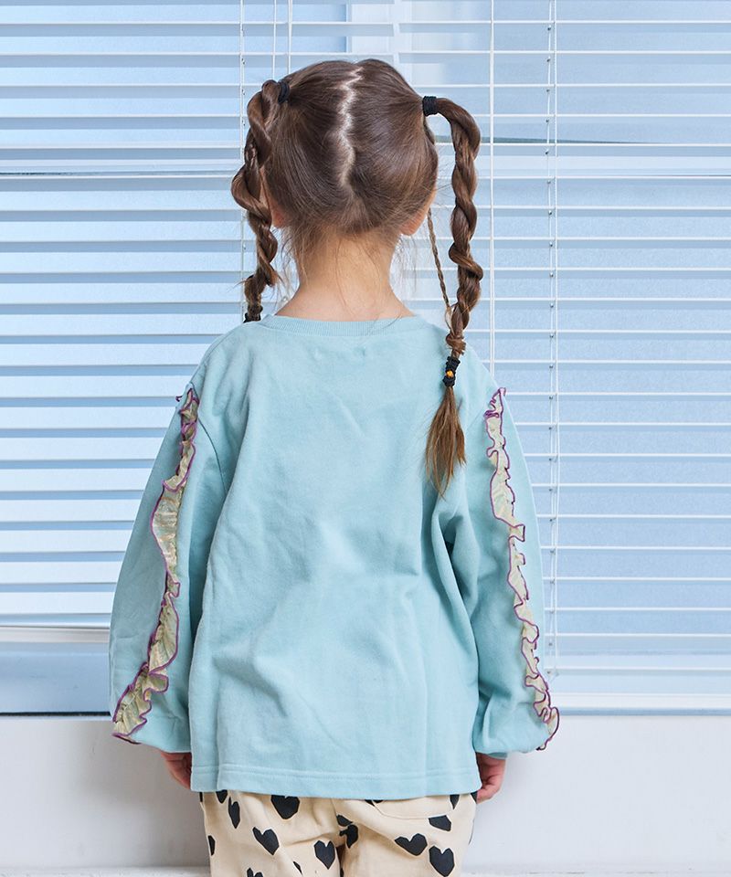 肩にあしらったライン状のフリルがポイントのトレーナー。