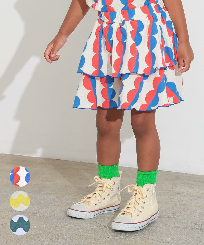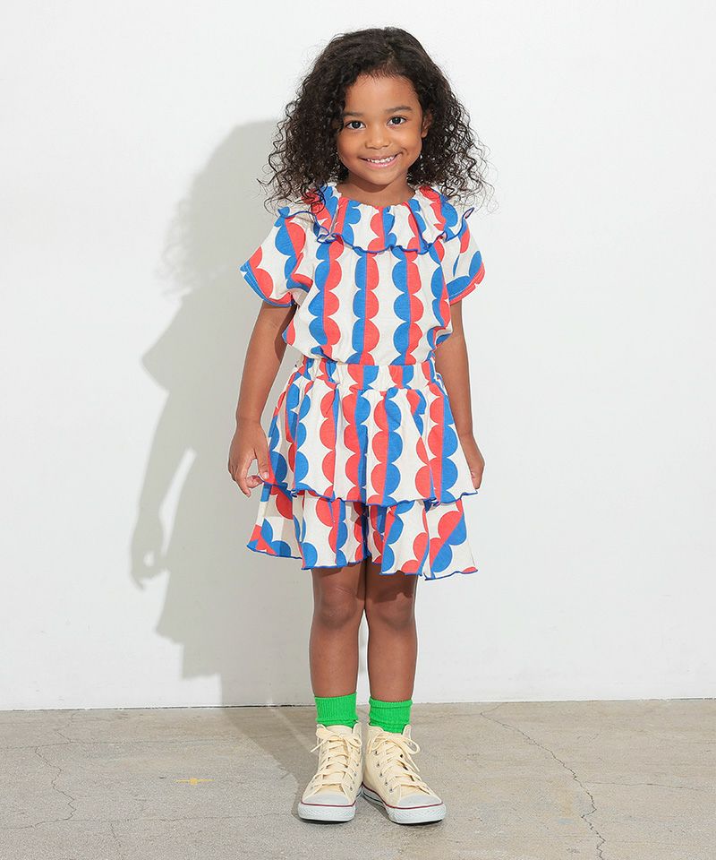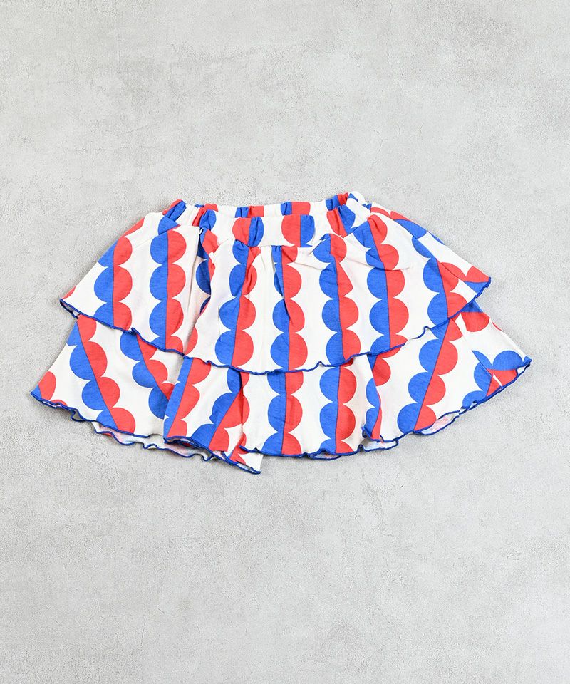 ミニ丈のフリルスカートをはいた様な、ガーリーデザインキュロット。
