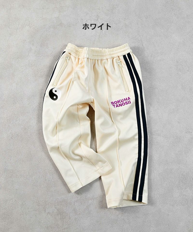 "BOKU HA TANOSII"のロゴ刺繍と陰陽マークが目を引きます。