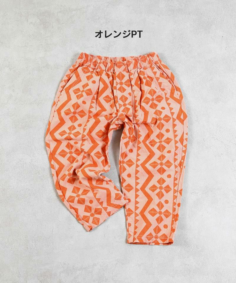 色鮮やかなカラーとソウガラが印象的なパンツ。