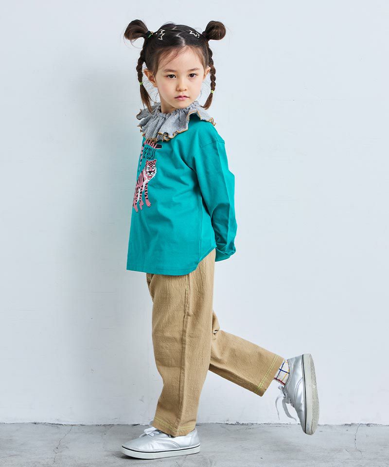 シンプルなトップスでもコーデが仕上がる万能パンツ。