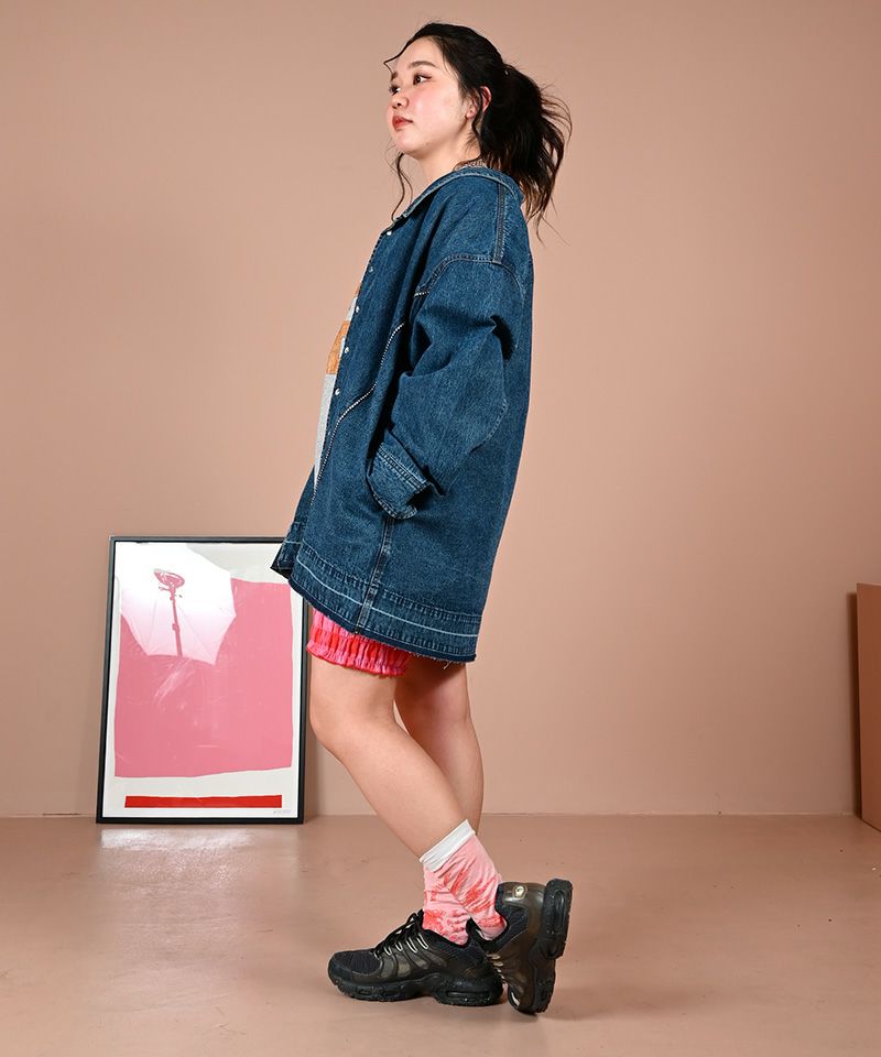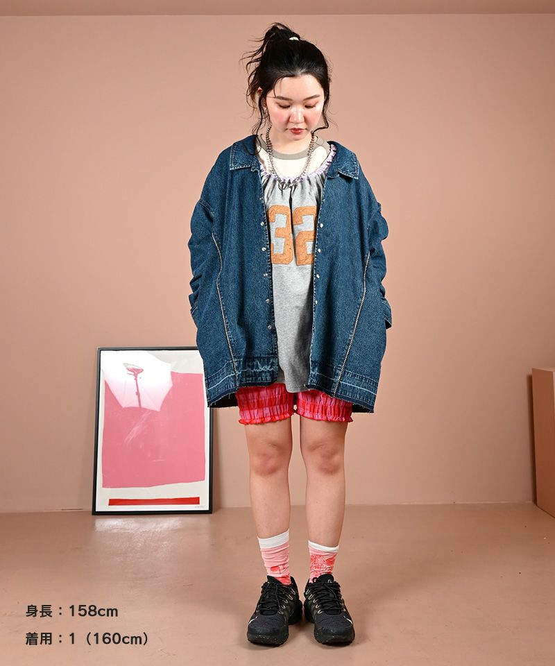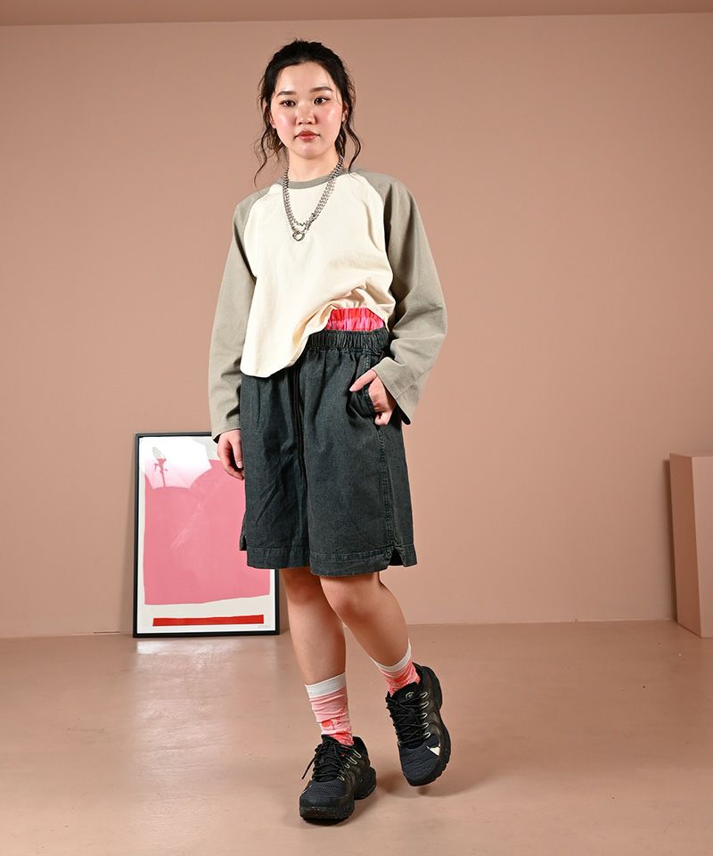 オーバーサイズのTシャツと合わせてカジュアルコーデに♪