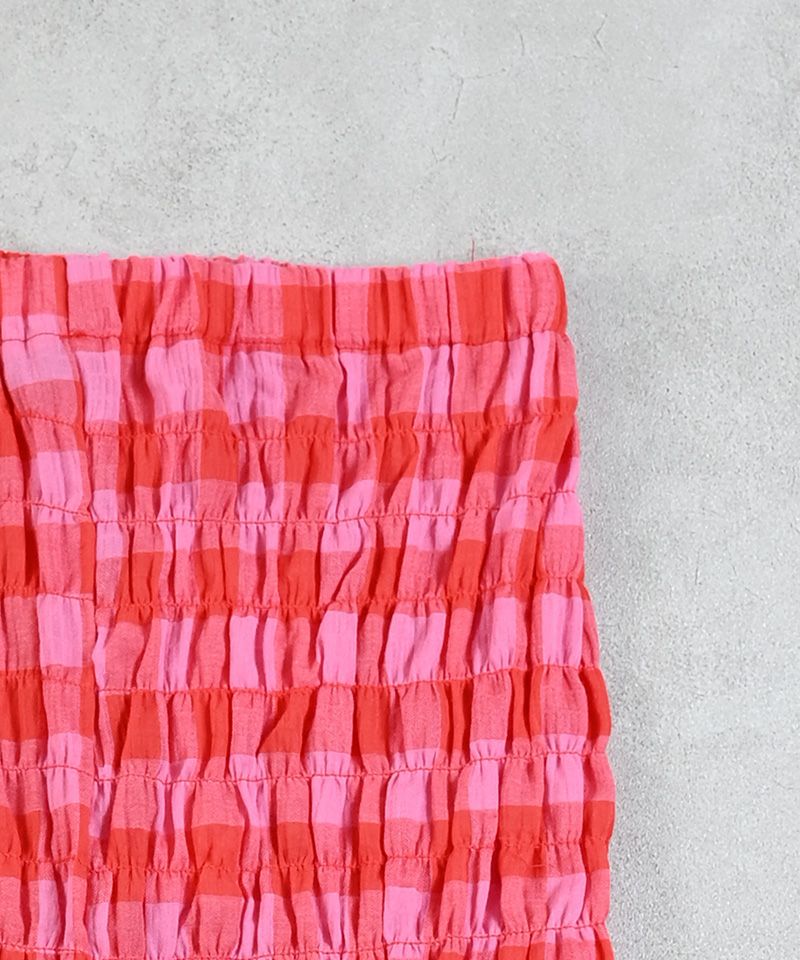 ワンピースに忍ばせてチェック柄をチラ見せでコーデが一気に華やかに◎