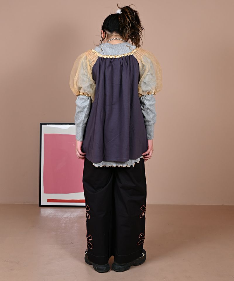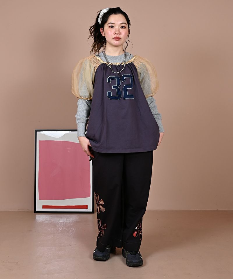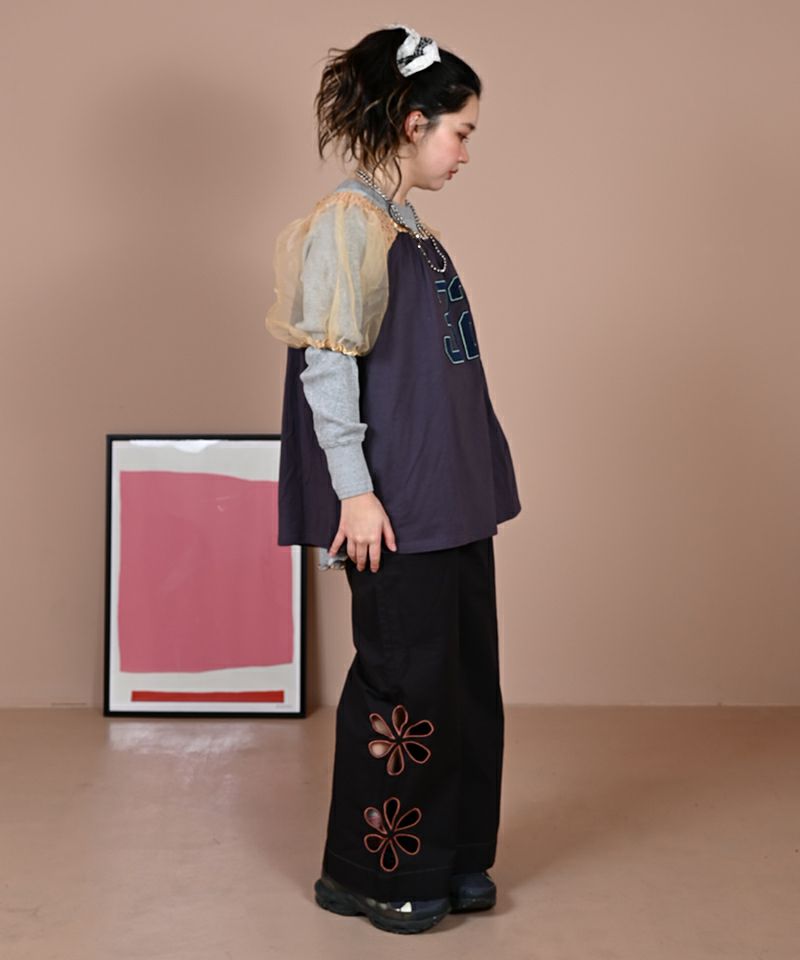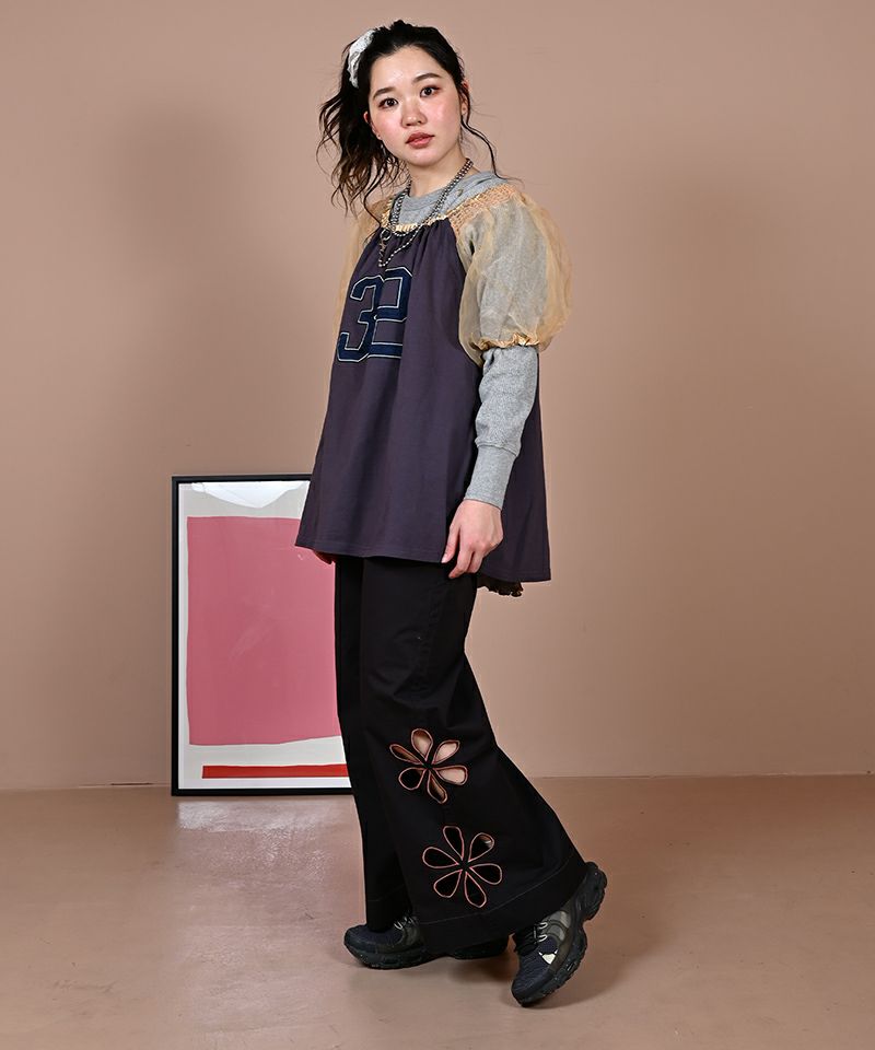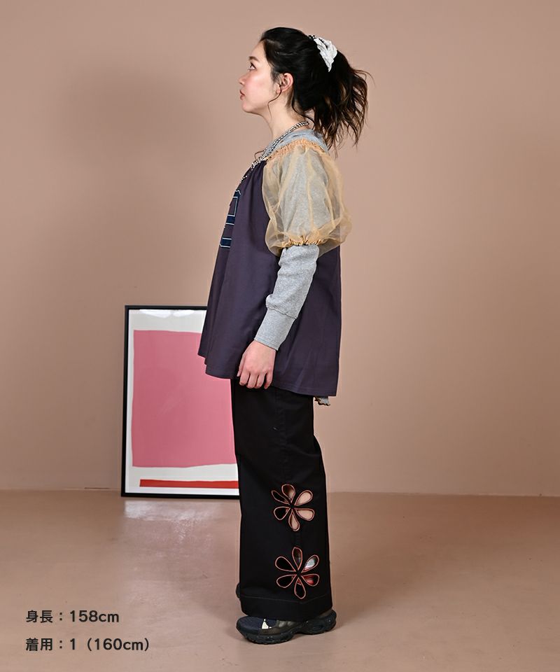 ワンピースとのレイヤードも裾のお花の刺繍がチラっと見えてカワイイ♪
