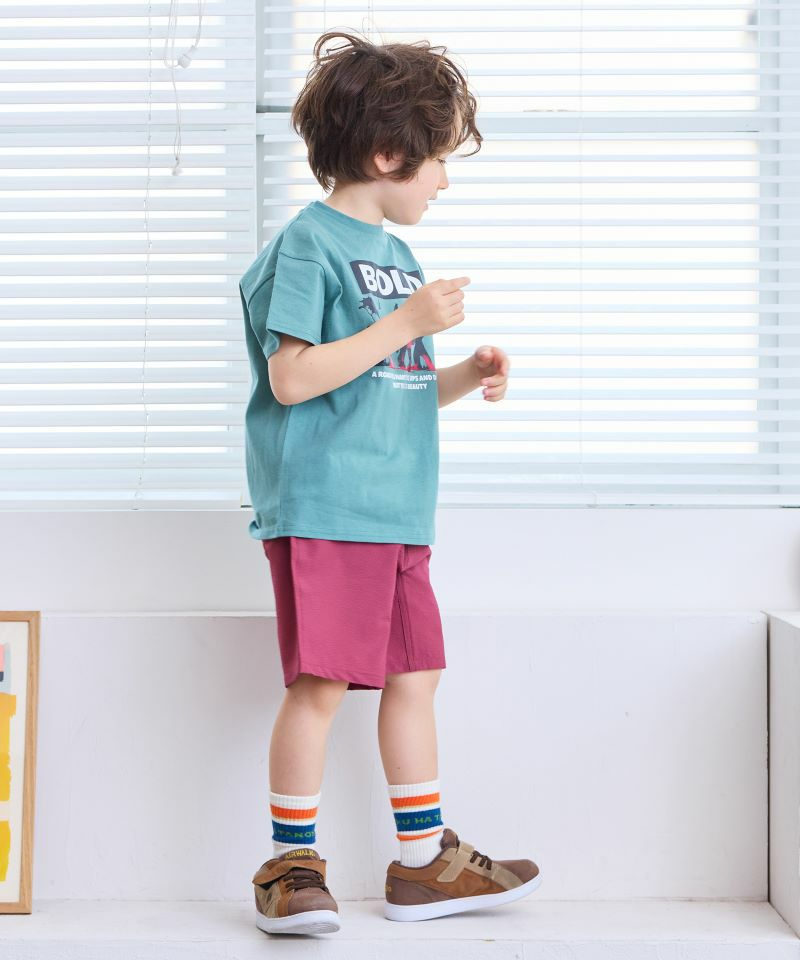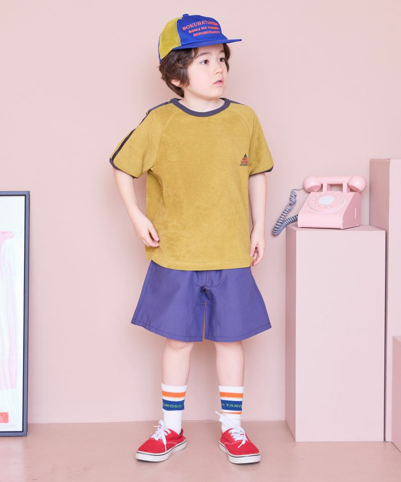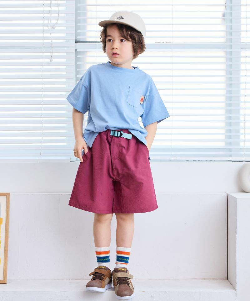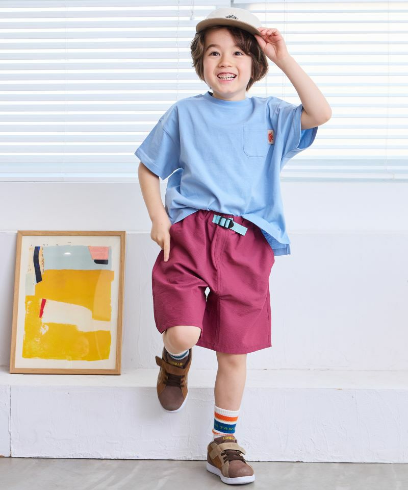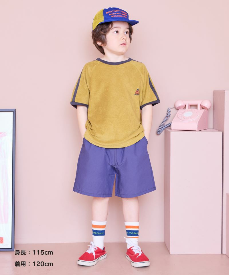 サイドのカラーテープがポイントのショートパンツ。