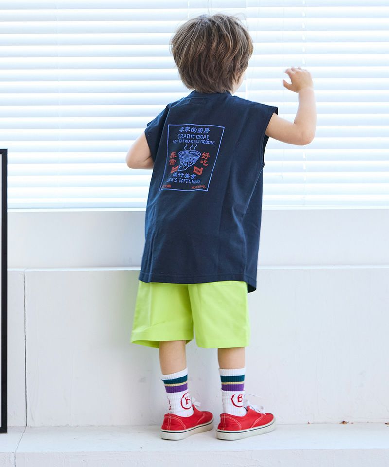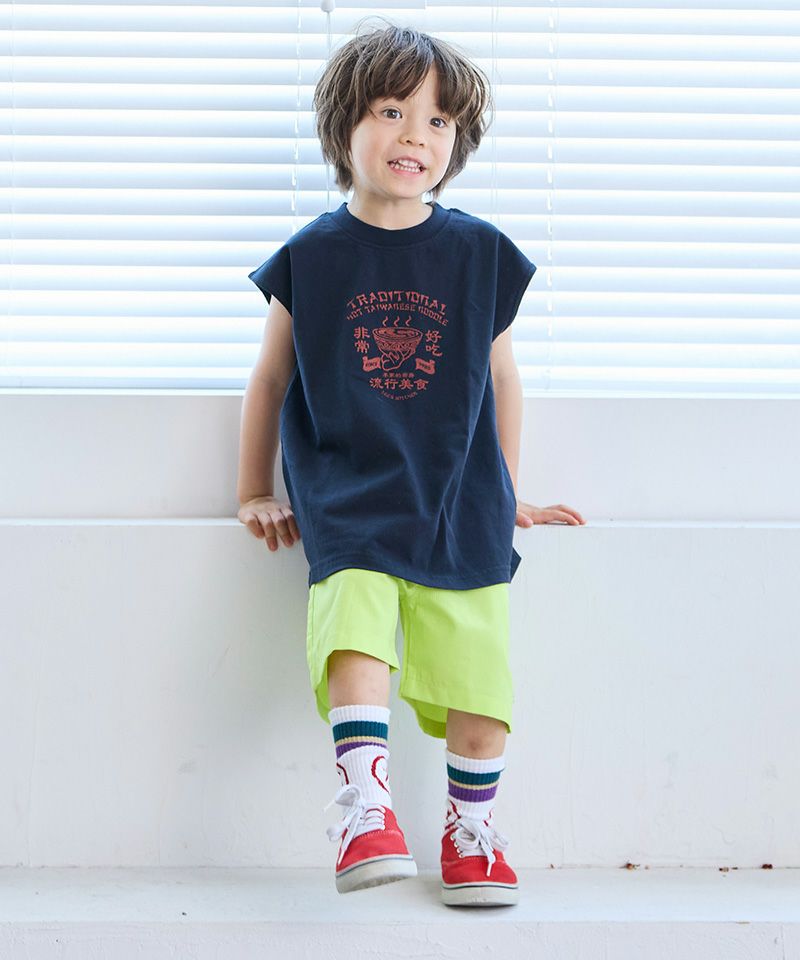 Tシャツやタンクトップでアウトドアコーデの完成。