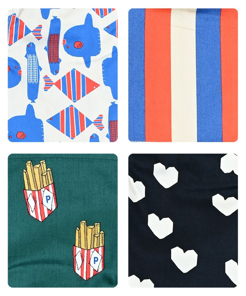 オフホワイトPT:FISH マルチST:ストライプ グリーンPT:フライドポテト チャコールPT:heart |