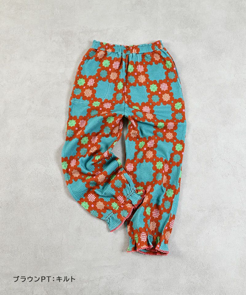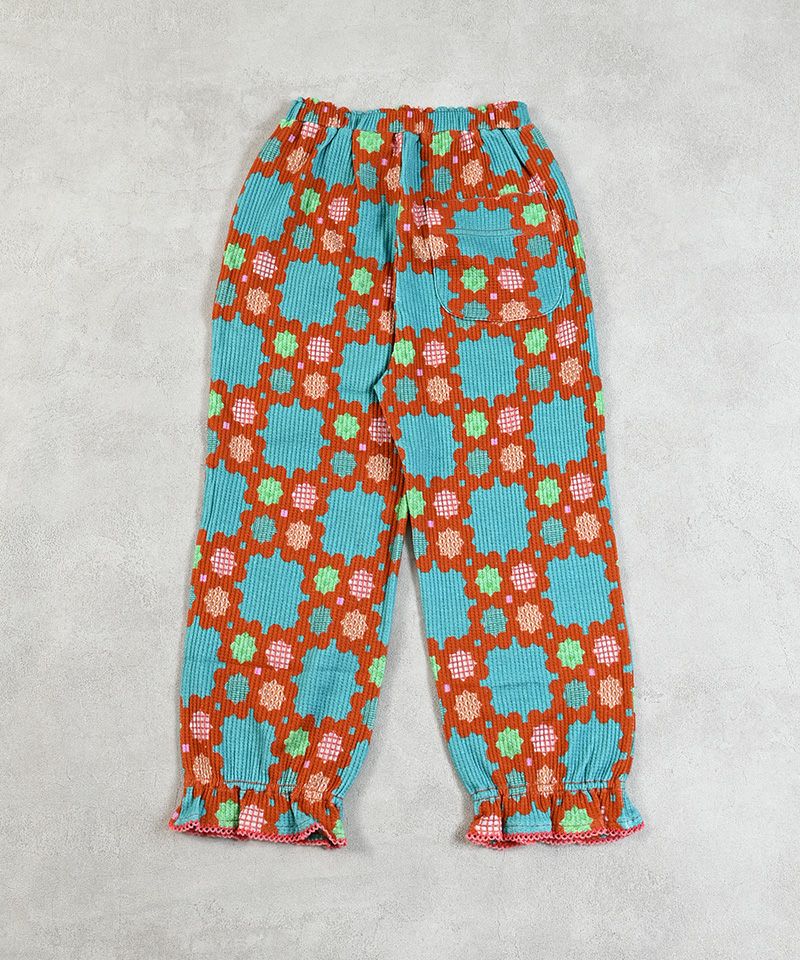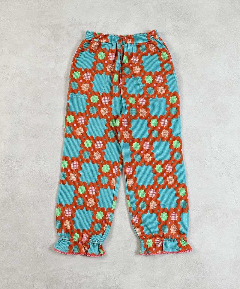 裾口にチェーンステッチを施したふんわりキャンディシルエットのロングパンツ。