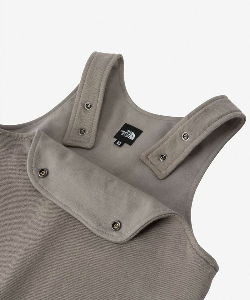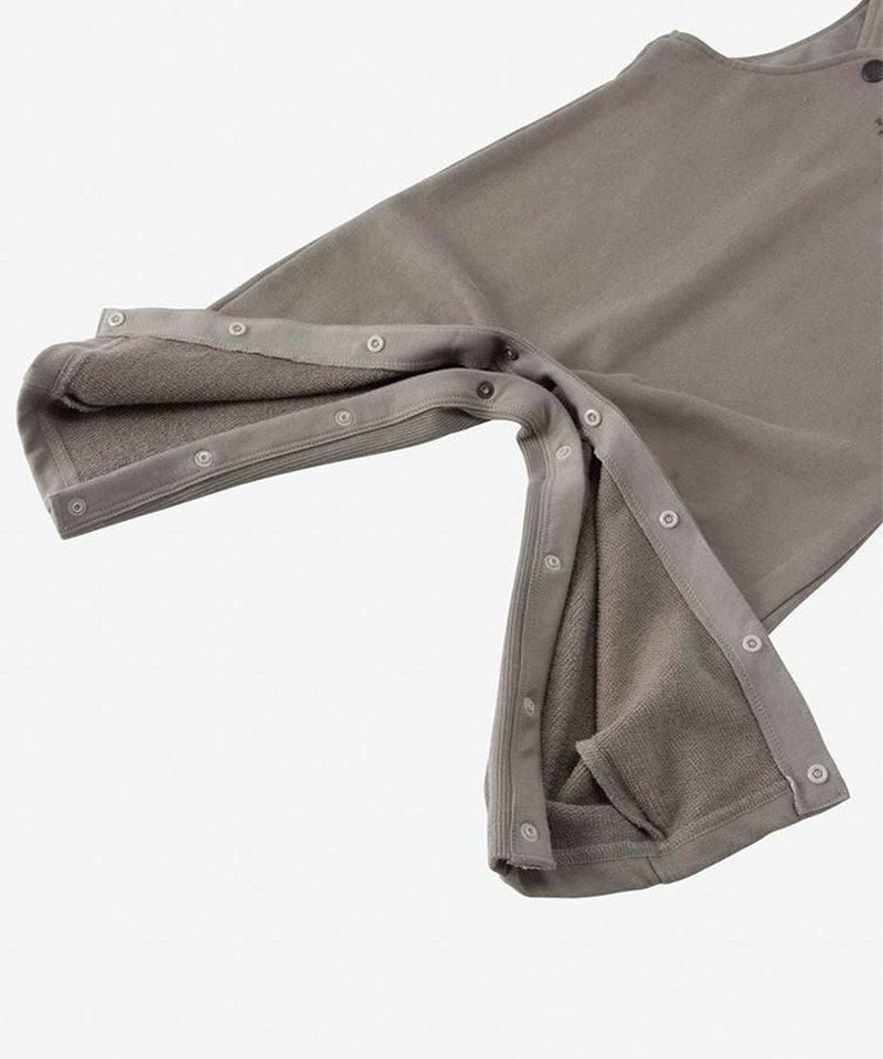 オーガニックコットンを使用した、スウェット生地のオーバーオール。