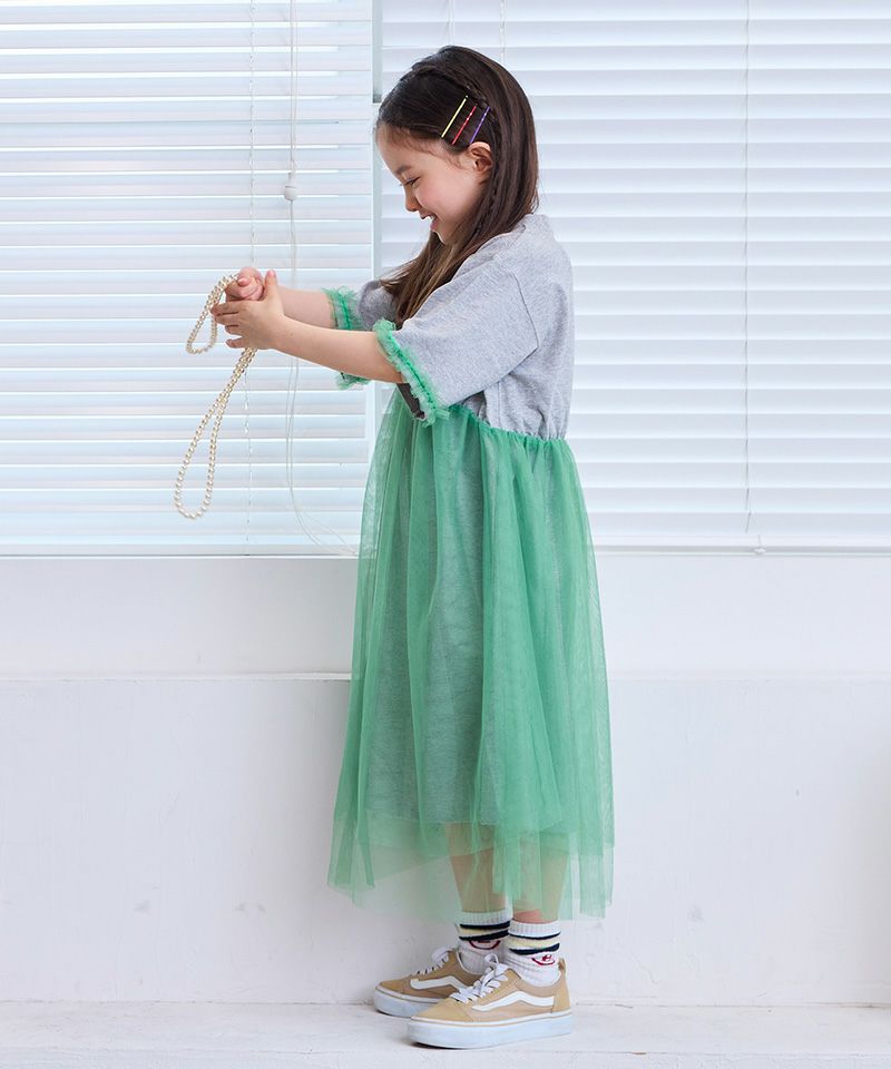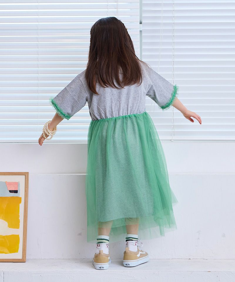 ふんわりダブルに重なったチュールが印象的なガーリーなワンピース♪