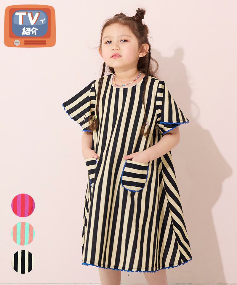 鮮やかなボーダーが夏らしく、華やかな1着。