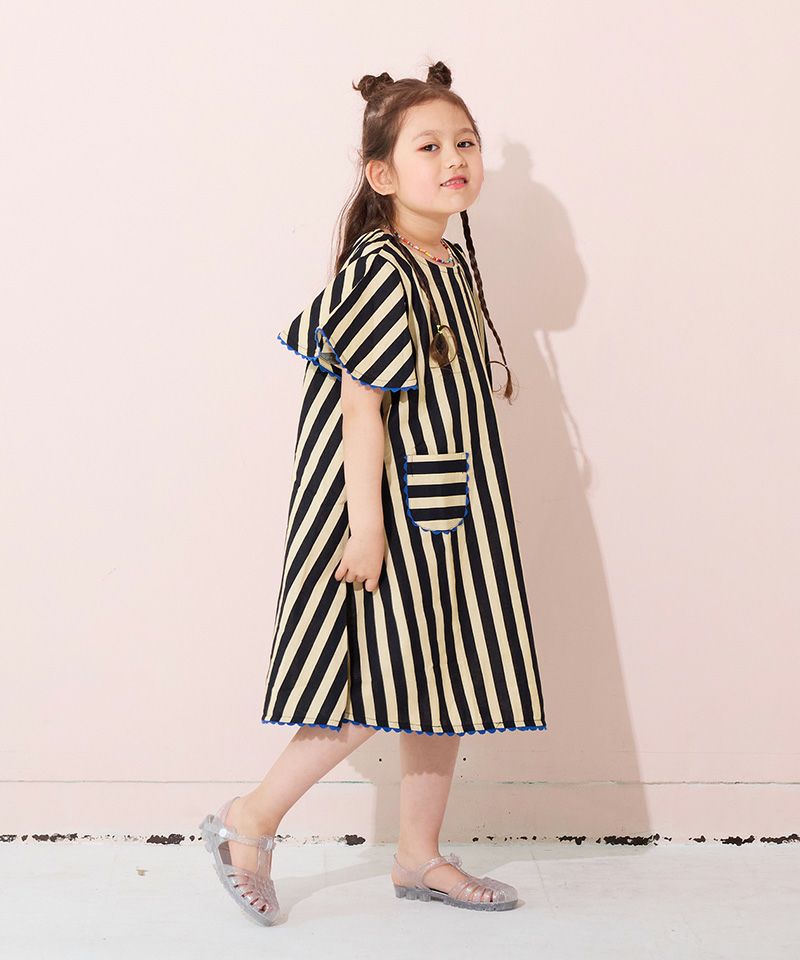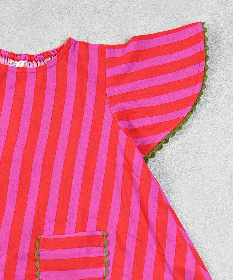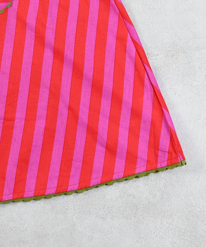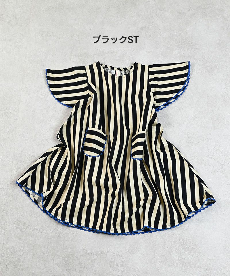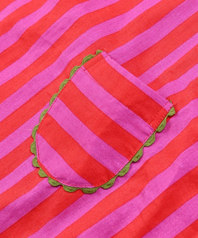 ストライプ柄に映えるフロントのボーダー柄ポケットも目を引きます。