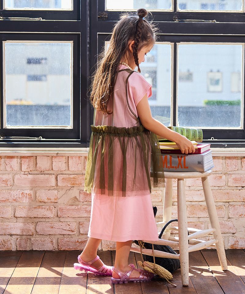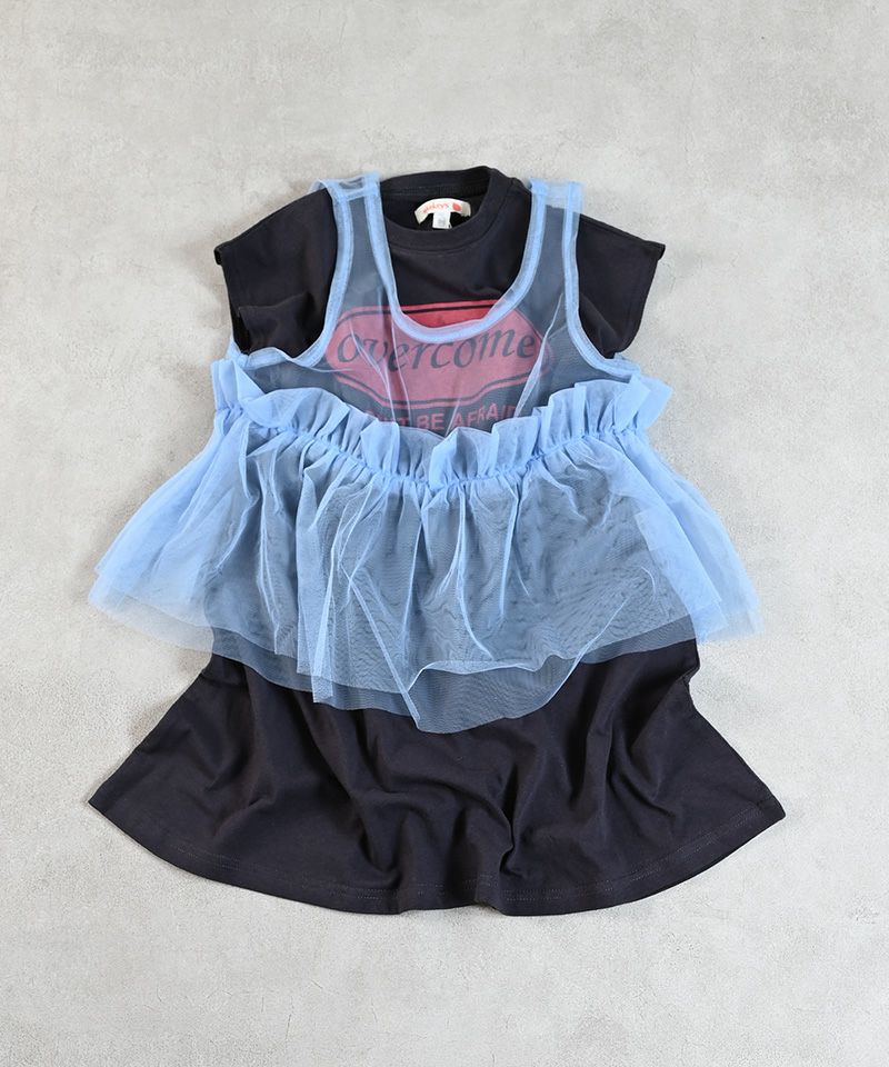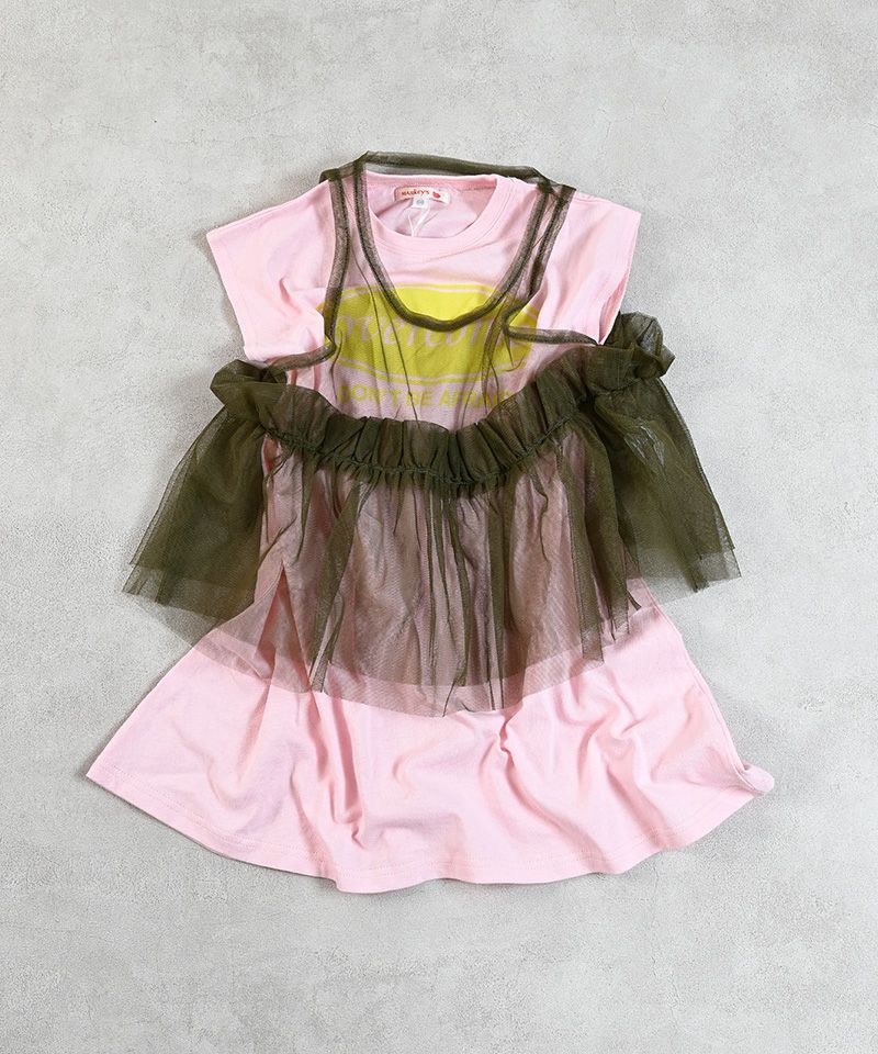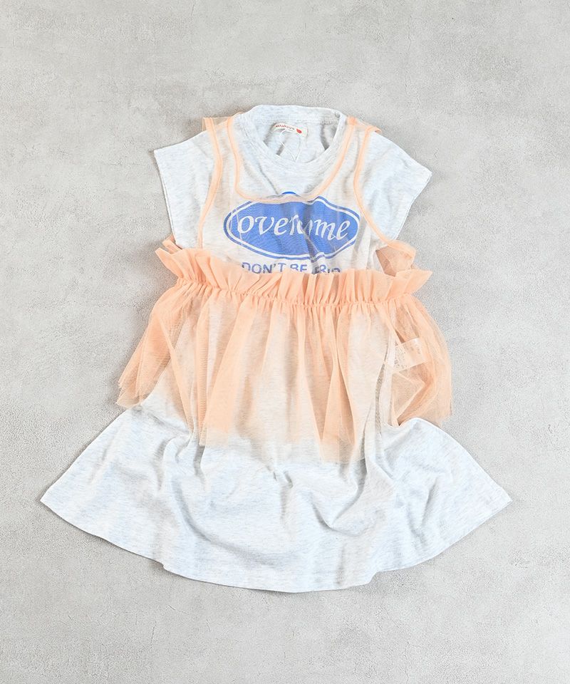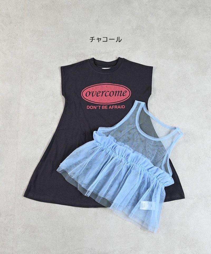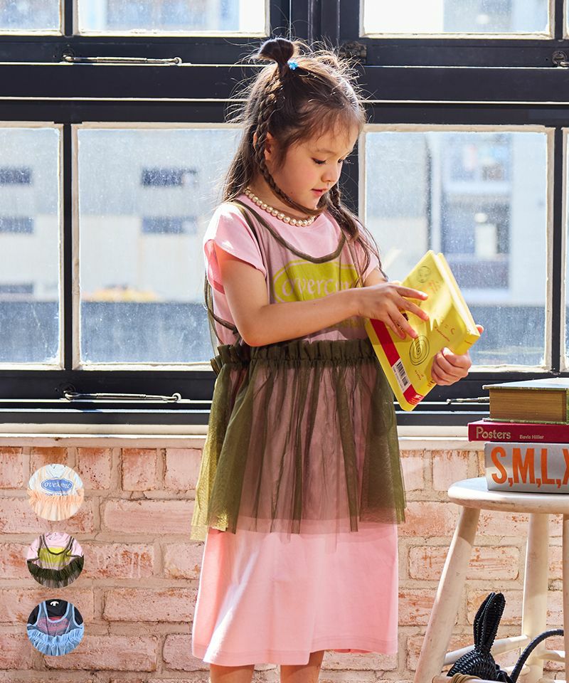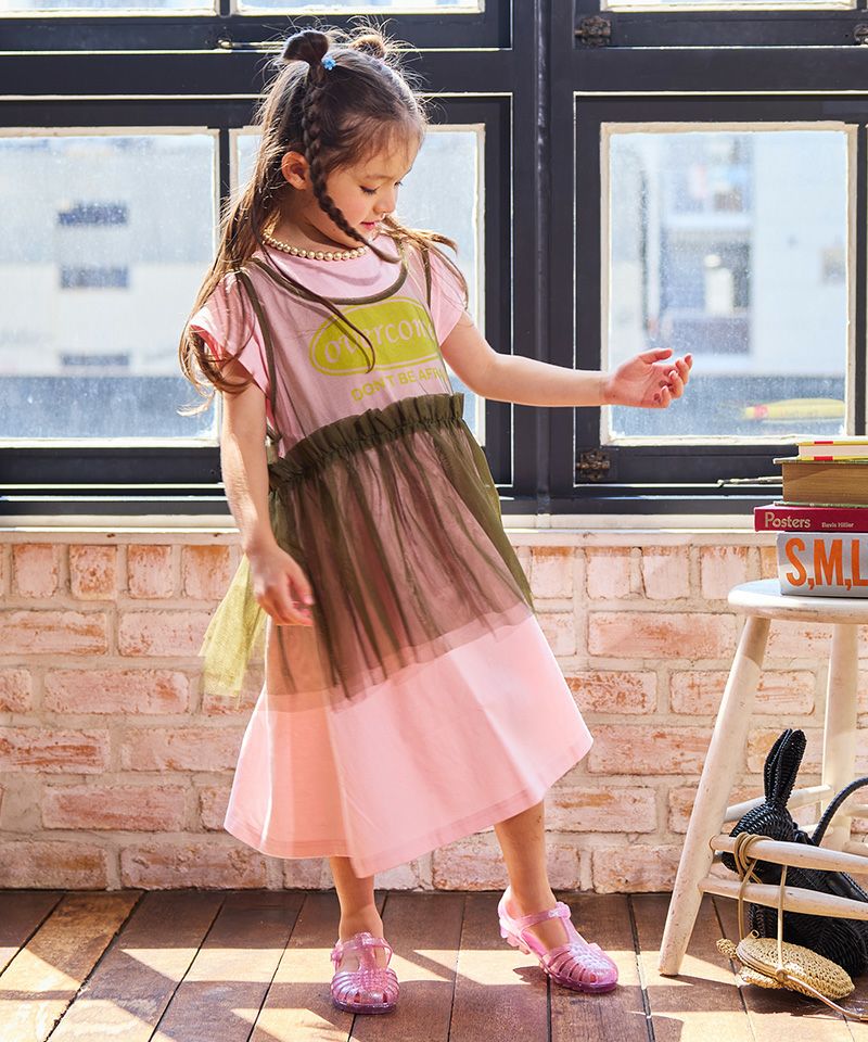 女の子らしいフレンチスリーブのワンピースに、トレンドのキャミチュールがセットになったアイテム。