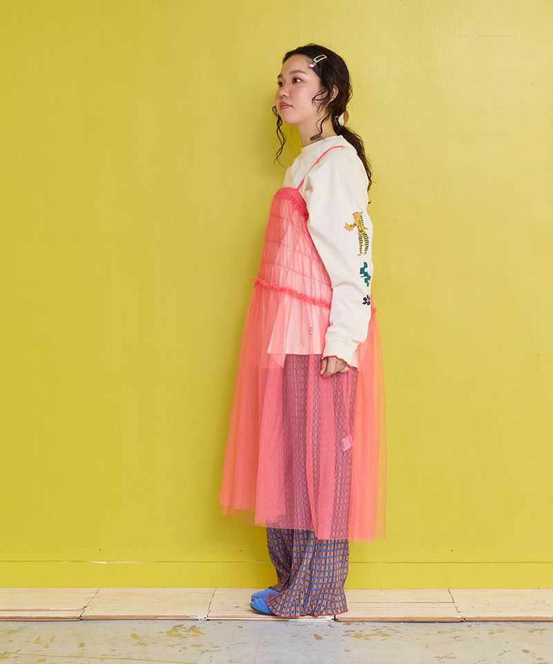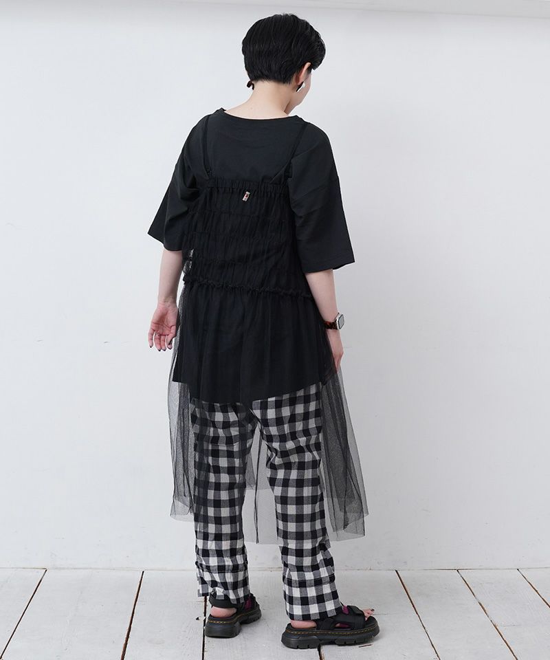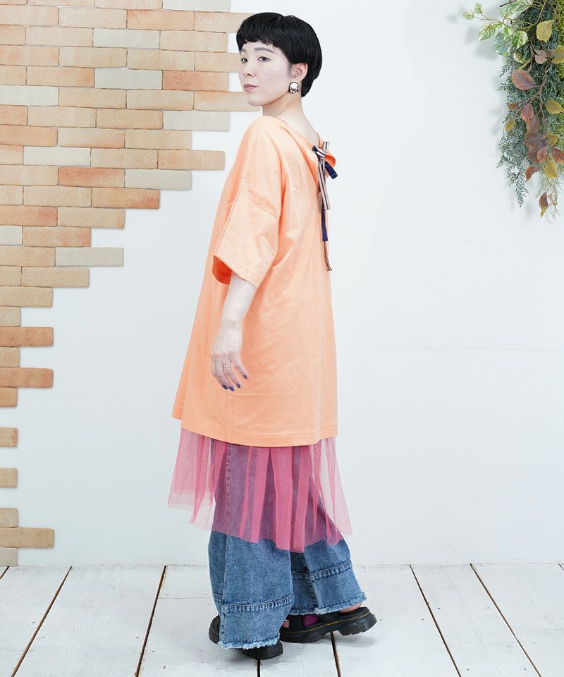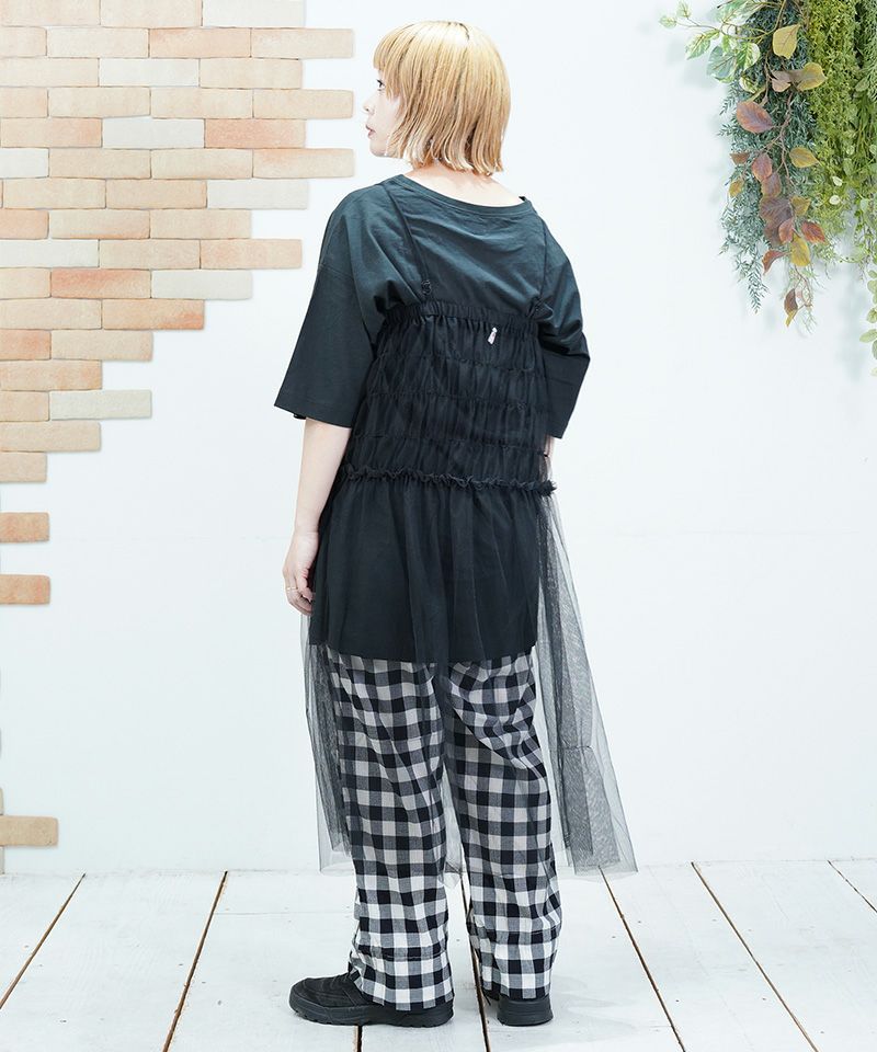 ギャザー部分はゆったりとしたゴム仕様でシルエットにアクセントが生まれます。