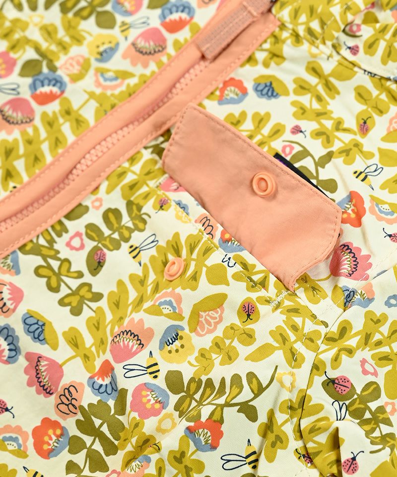 UPF(紫外線防止指数)40+のUVプロテクションを提供し、軽度の水分を弾くDWR(耐久性撥水)加工はPFASを意図的に使用せずに製造。