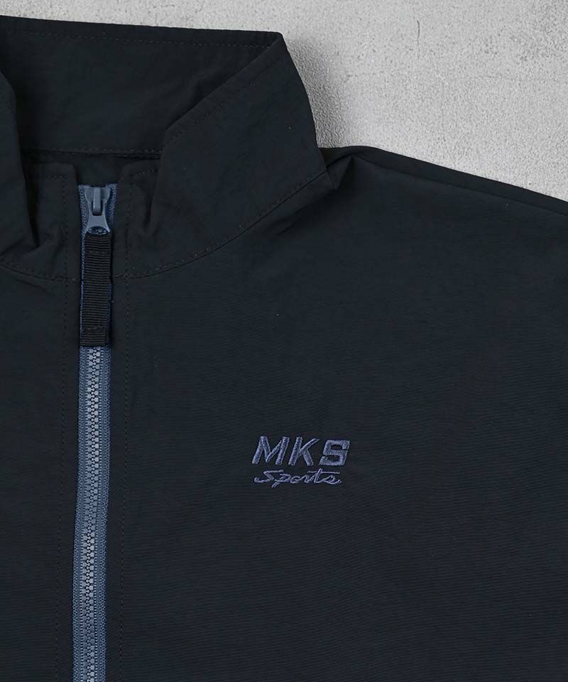 "MKS sports"の刺繍ロゴが左胸に施されています。