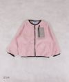 やわらかなボア素材に、袖や胸ポケットの配色が映えるノーカラージャケット。