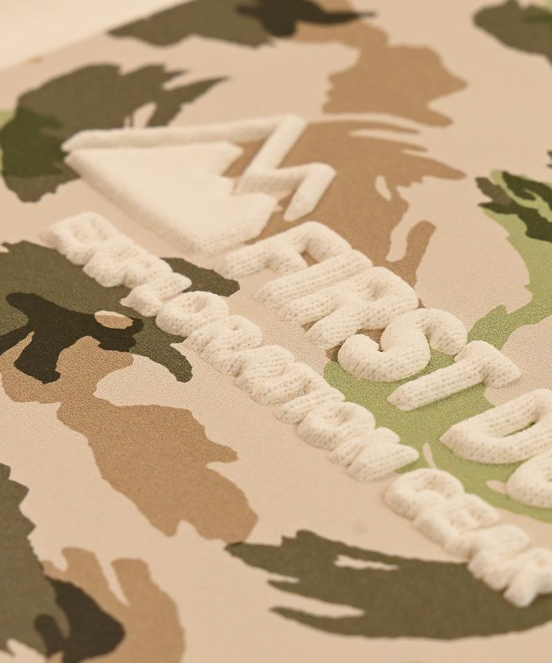 FIRST DOWNらしい迷彩柄に重なったフロッキープリントが◎