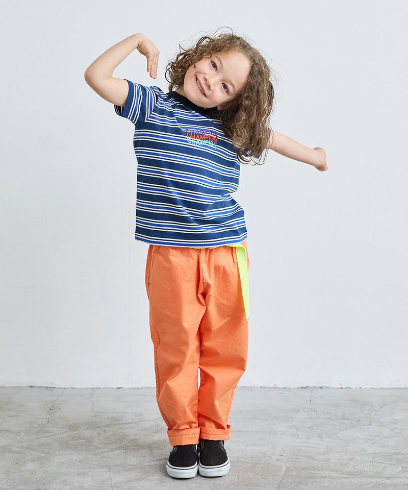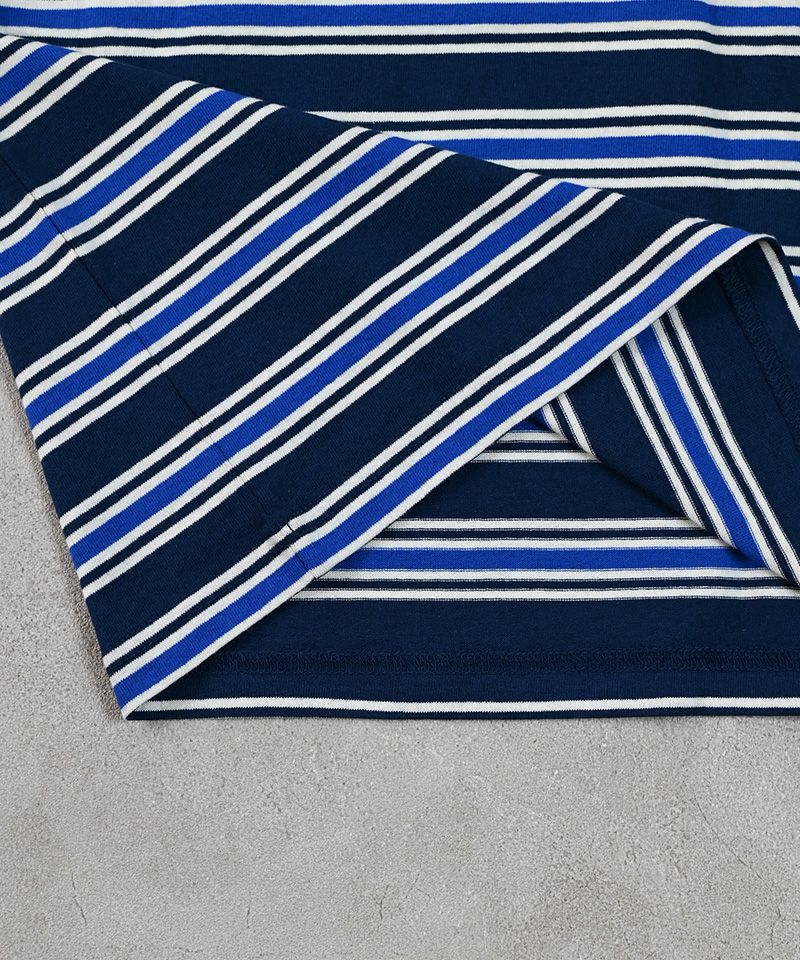 配色のマルチボーダーと、ブランドロゴの刺繍が印象的。