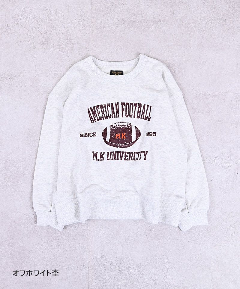 フロントに大胆なカレッジロゴを配した、存在感のあるスウェット。