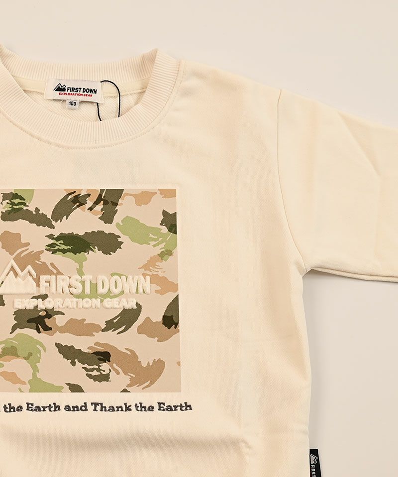 FIRST DOWNらしい迷彩柄に重なったフロッキープリントが◎