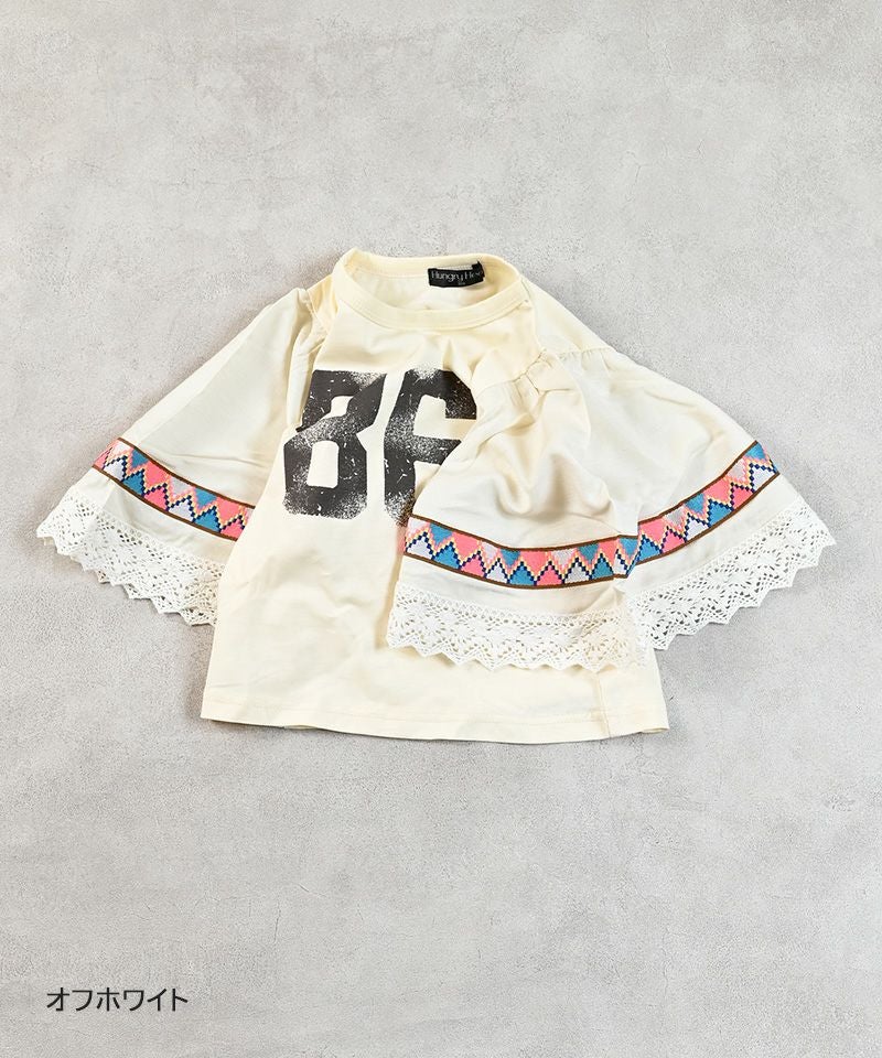 | 素材 | [本体・袖レース部分]綿100% [リブ部分]綿95%ポリウレタン5% [袖部分]レーヨン75% 麻:25% [袖テープ部分]ポリエステル:100% |