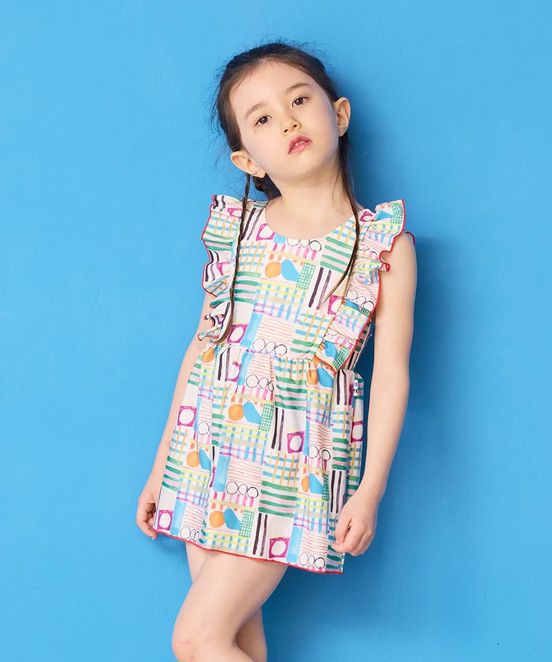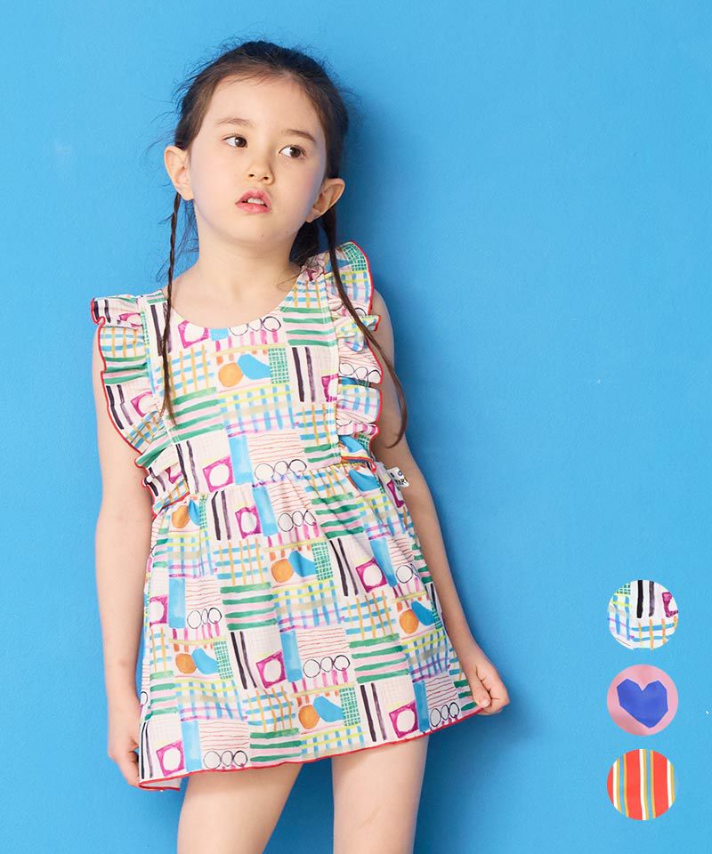 同柄のベビーラッシュガードスーツできょうだいリンクコーデも可能です。